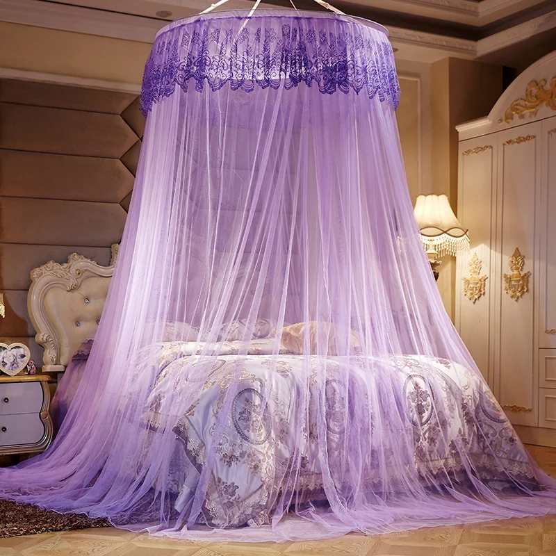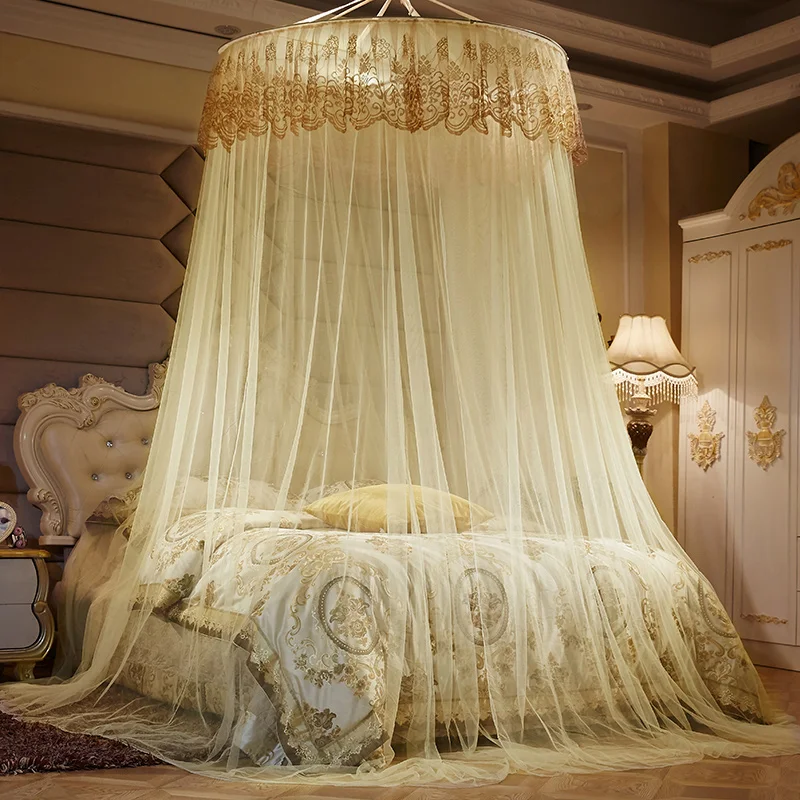 Princess Bed Canopy with Embroidery Lace Home Decoration Hanging Mosquito Net Folded Feature Mosquito Net