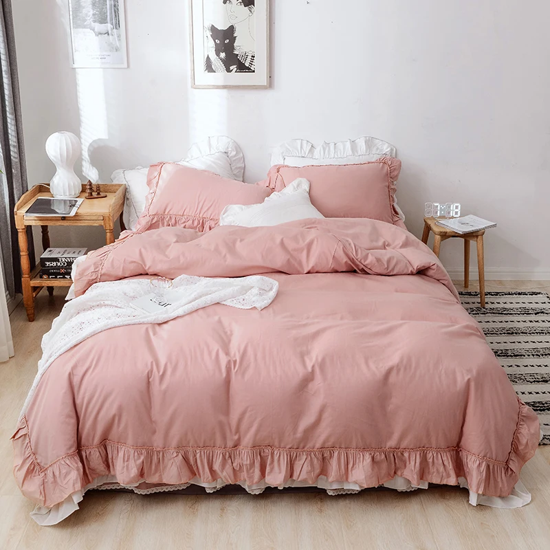 2022 New Arrival Breathable Home Textile Luxury 95gsm Prewashed Microfibre Ruffle Duvet Cover Sets Bedding
