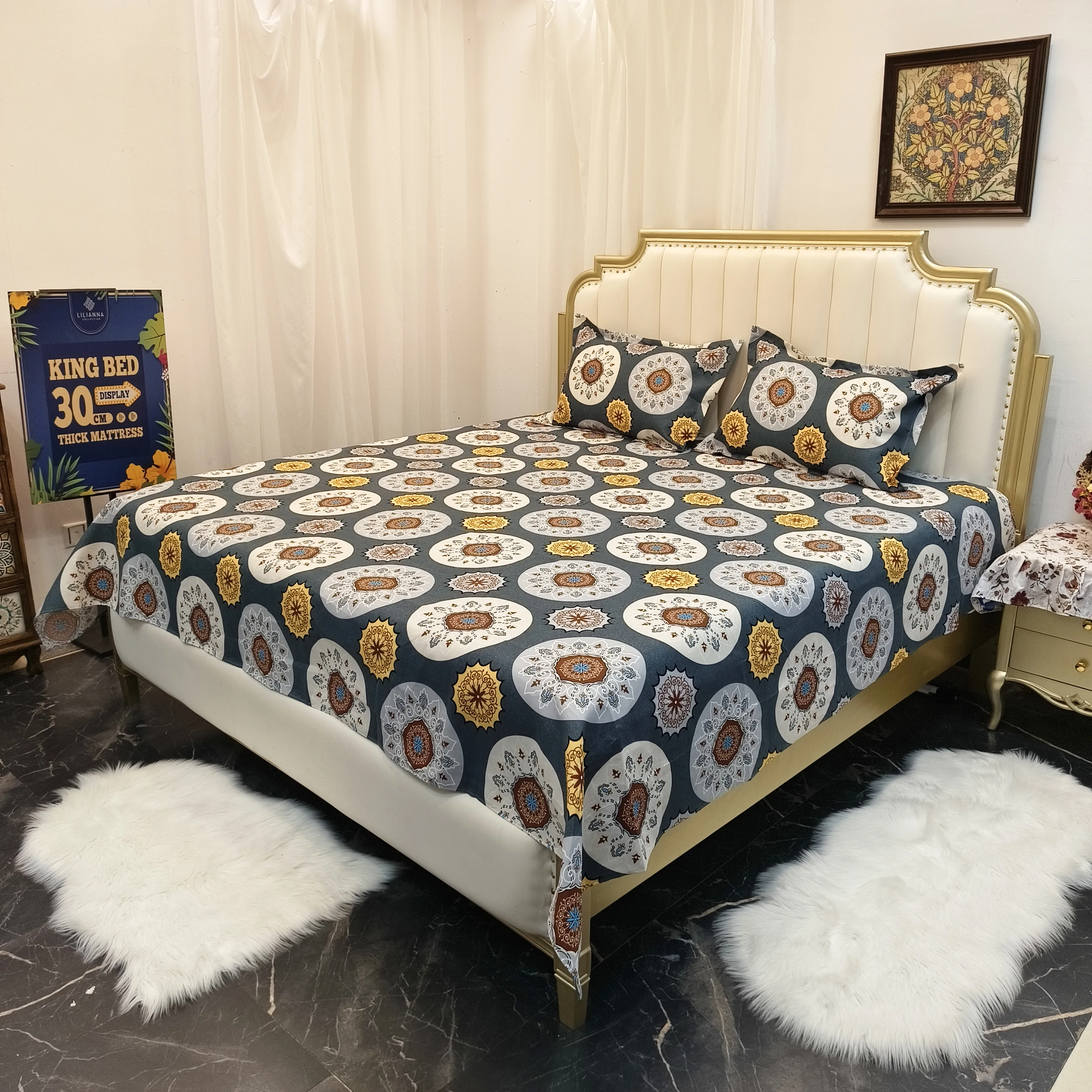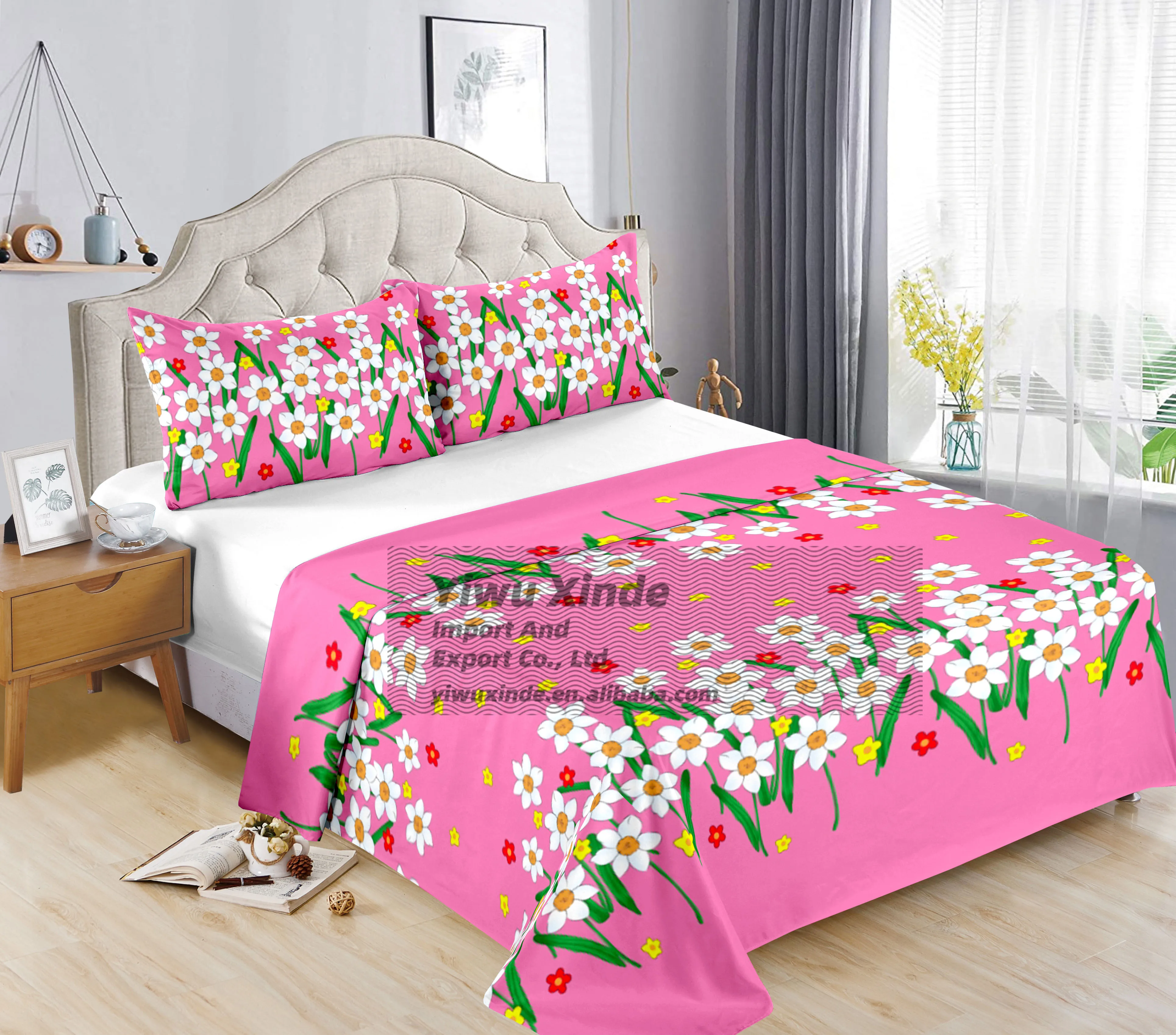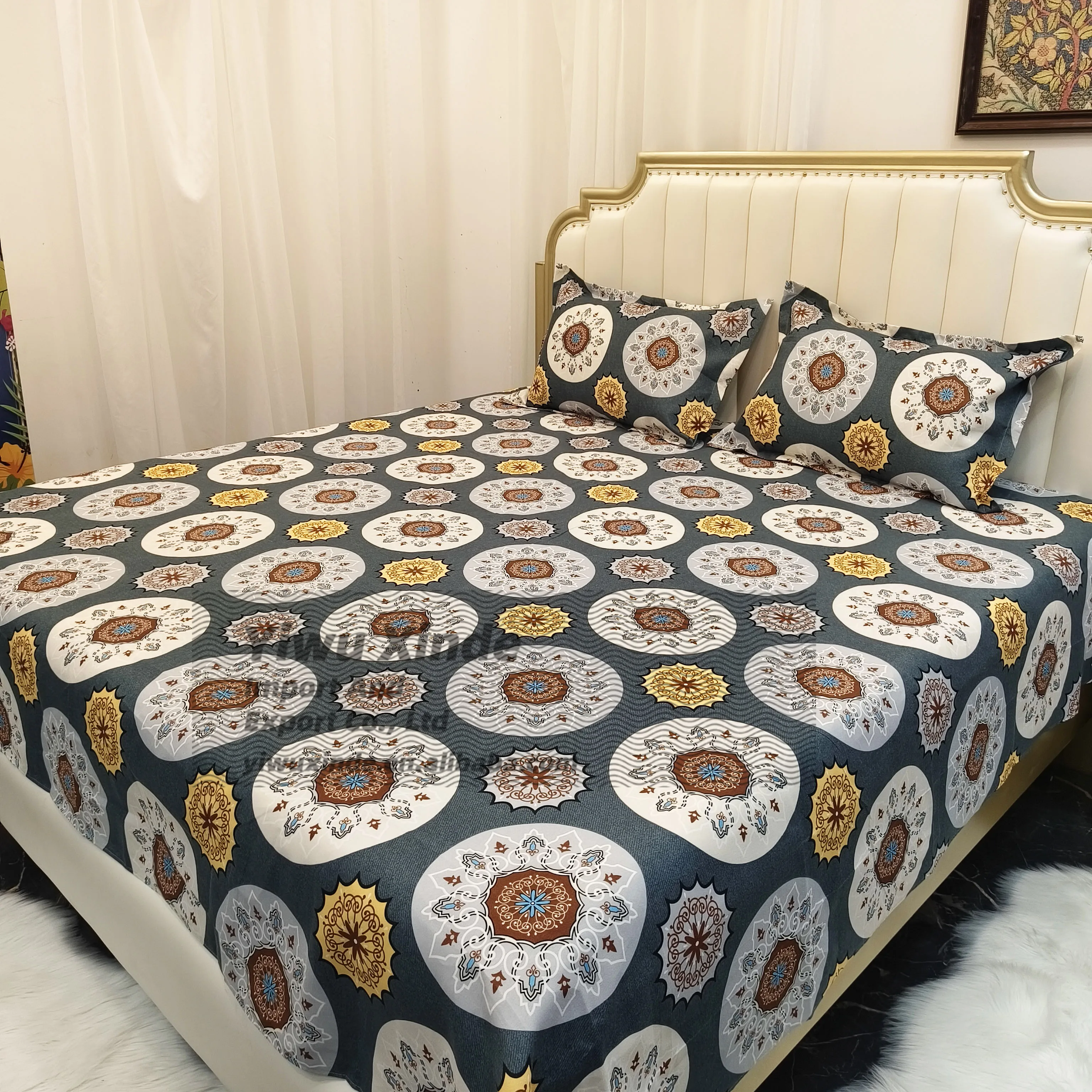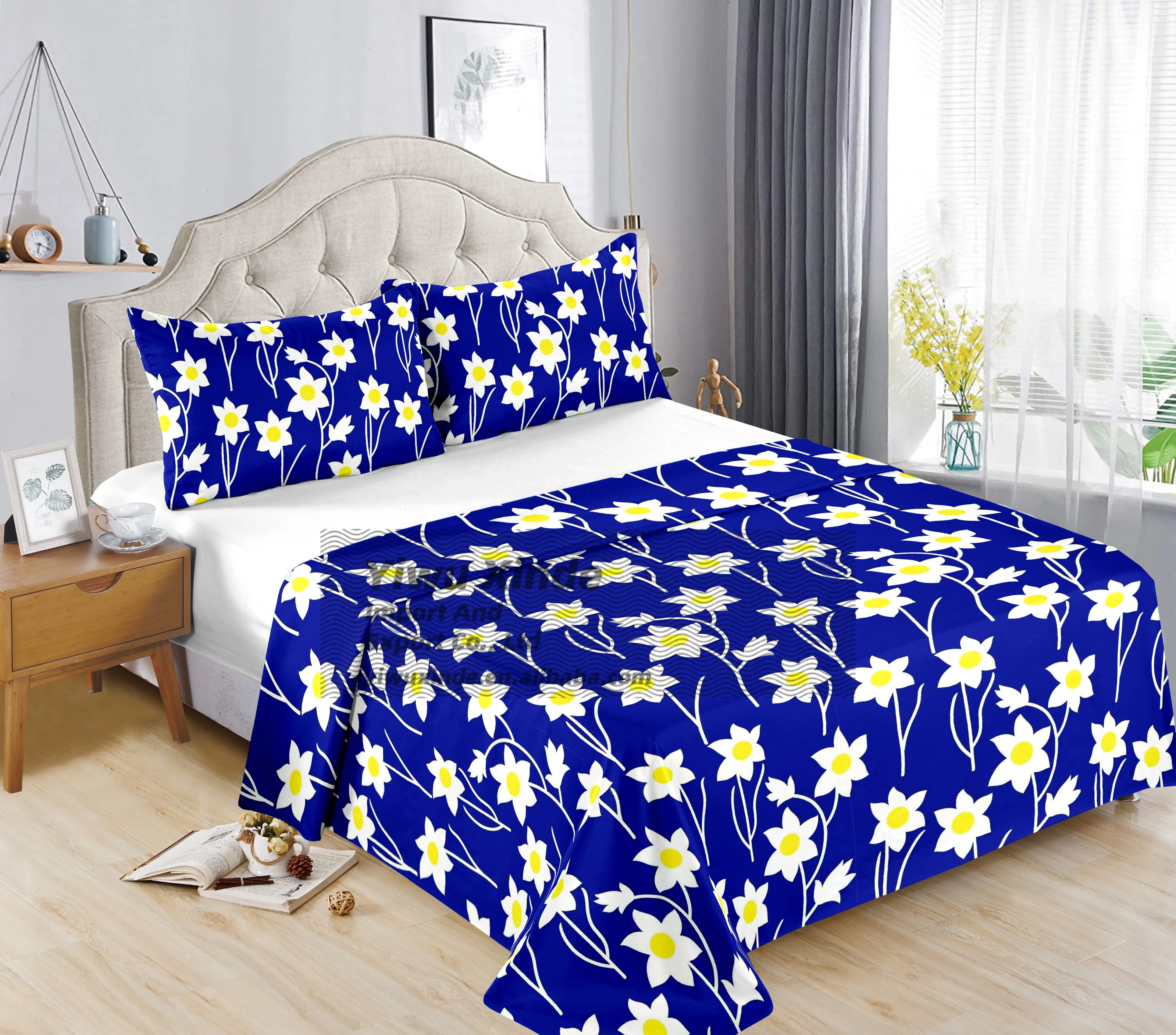 Printed Floral Cotton King Size Bed Sheet Set 3 Pcs Bedding Set Drap Set Fitted Sheet and Two Pillowcases for Bedroom Decor