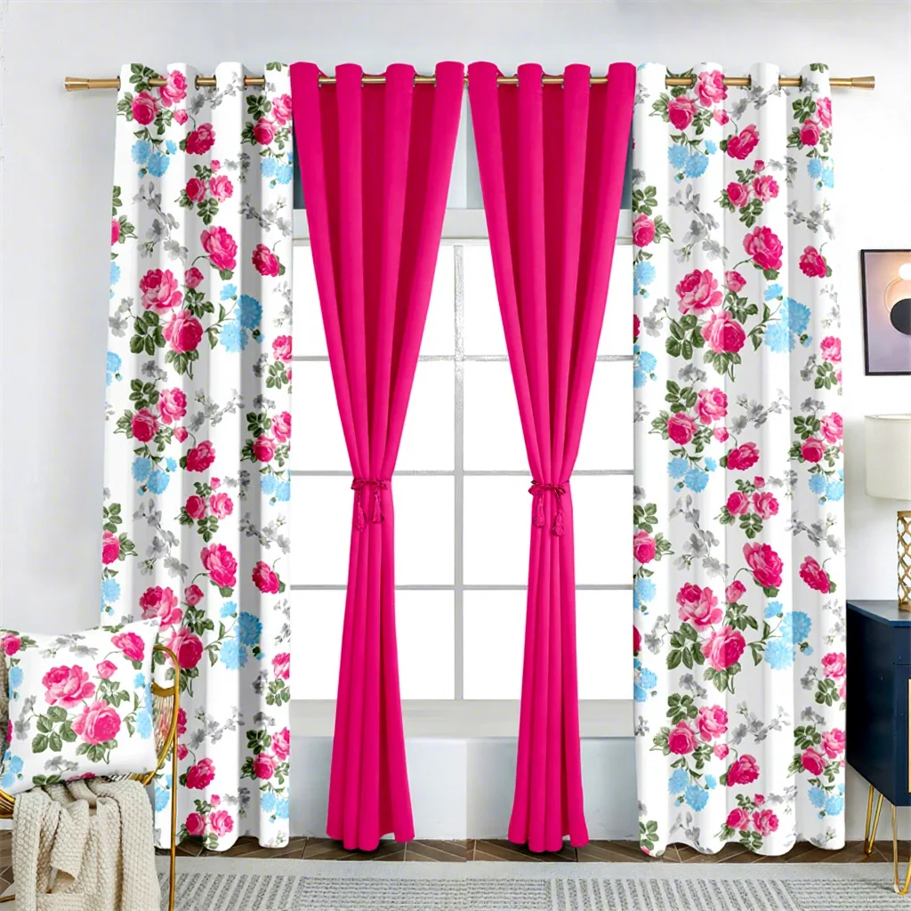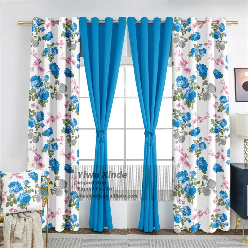 2026 Wholesale Home Window Curtain Decor Double Layer Curtains 7 Piece for Bedroom Set with Cushion Cover