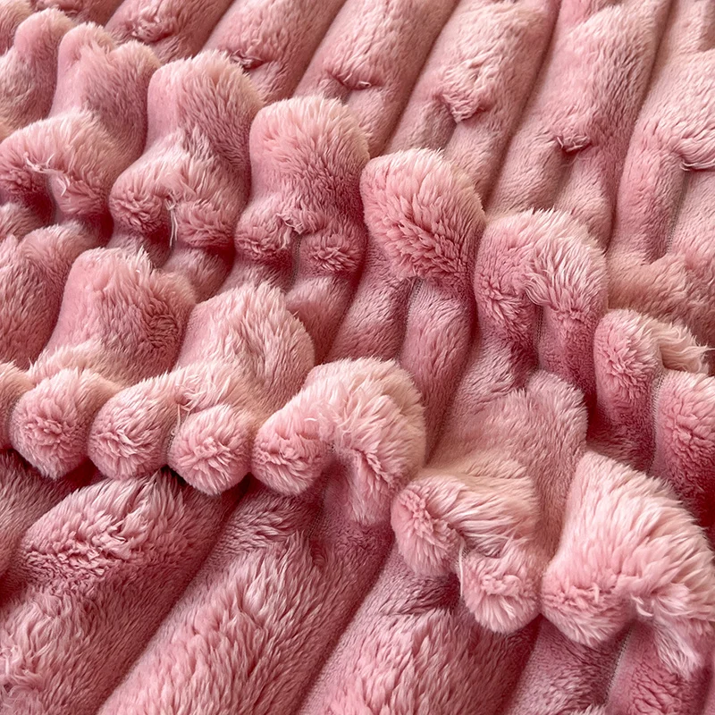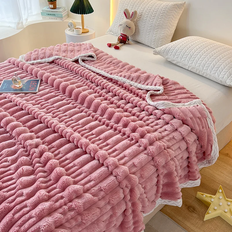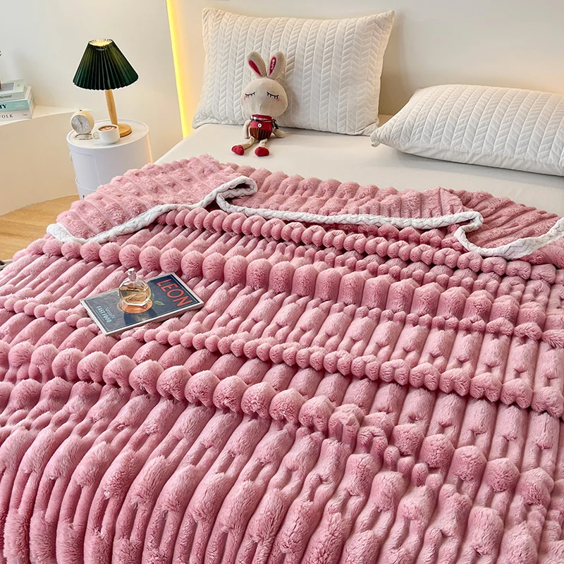Luxury Jacquard Striped Faux Fur Throw Blanket Cozy Milky Fluffy Plush for Sofa Couch Bed Warm Knitted Woven Blanket for Home