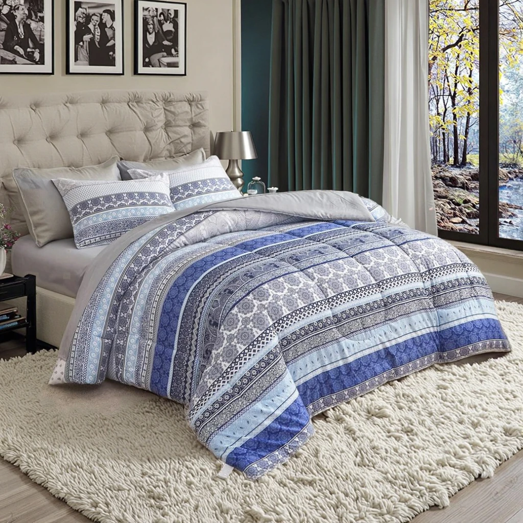 Wholesale American Luxury Style 3pc Bed Comforter Set Boho Striped Reversible Quilted Polyester Filling Printed Bedding Sets