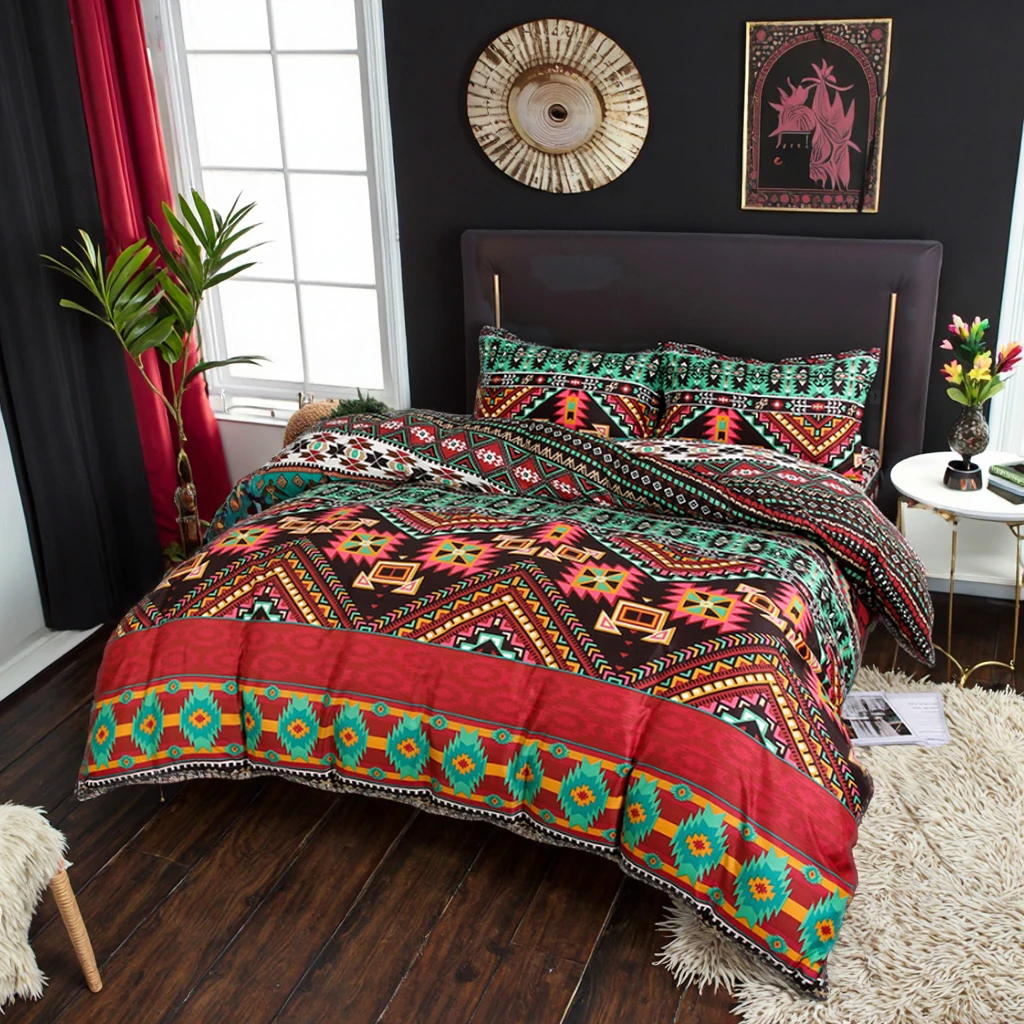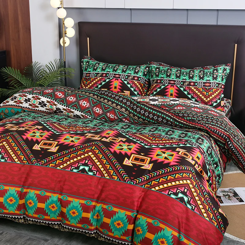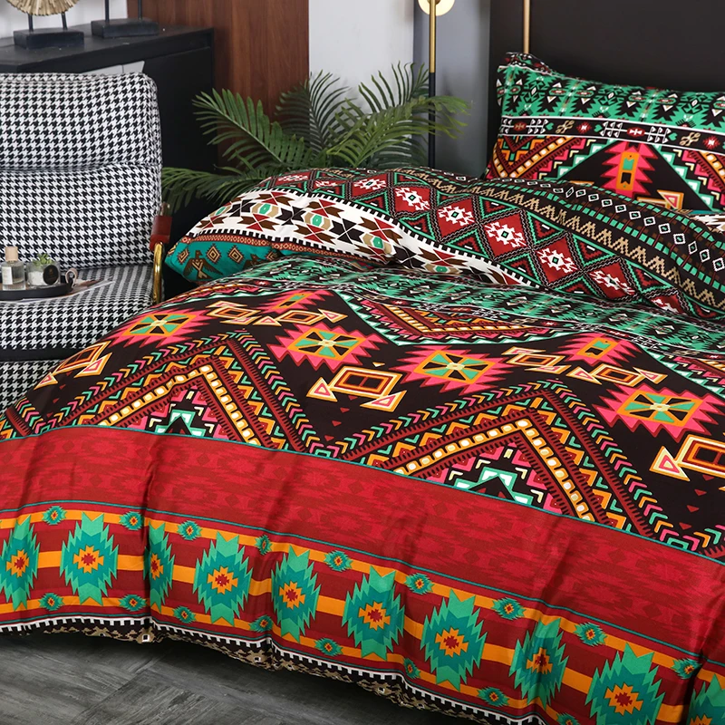 European American Bohemian Style Three-Piece Printed Bedding Set Quality Quilt Cover & Pillowcase with Geometric Design