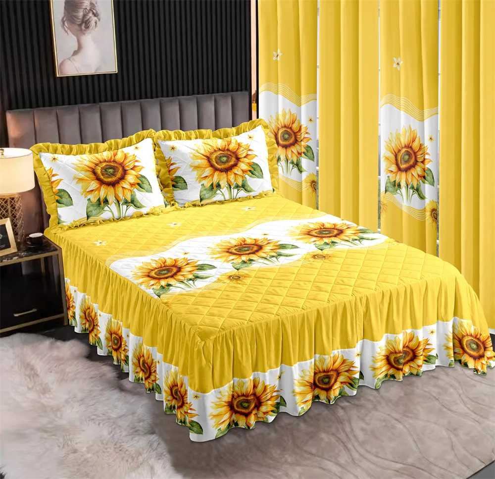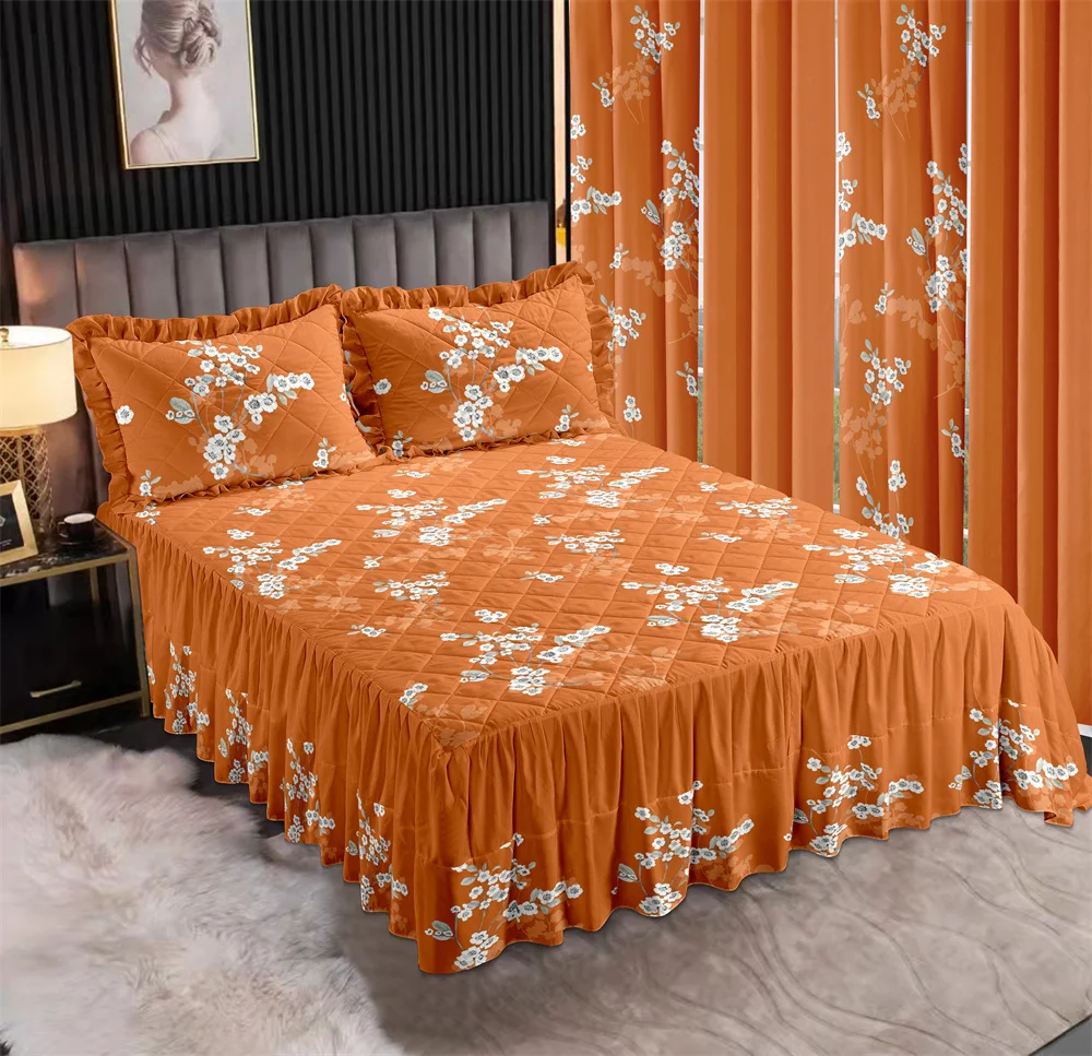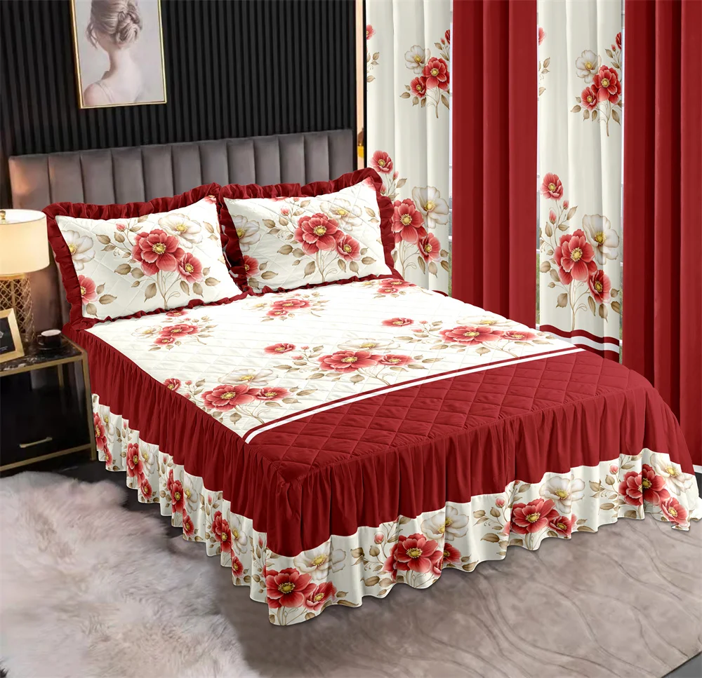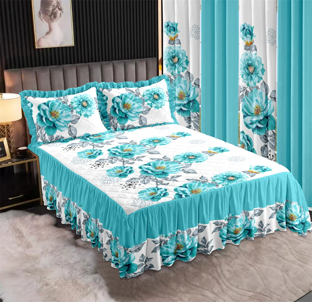 LILIANNA COLLECTION Patchwork Bedspread with Double Layer Ruffles Bedskirt Pillowcases Curtains Matching Bedding Sets 7 Pieces