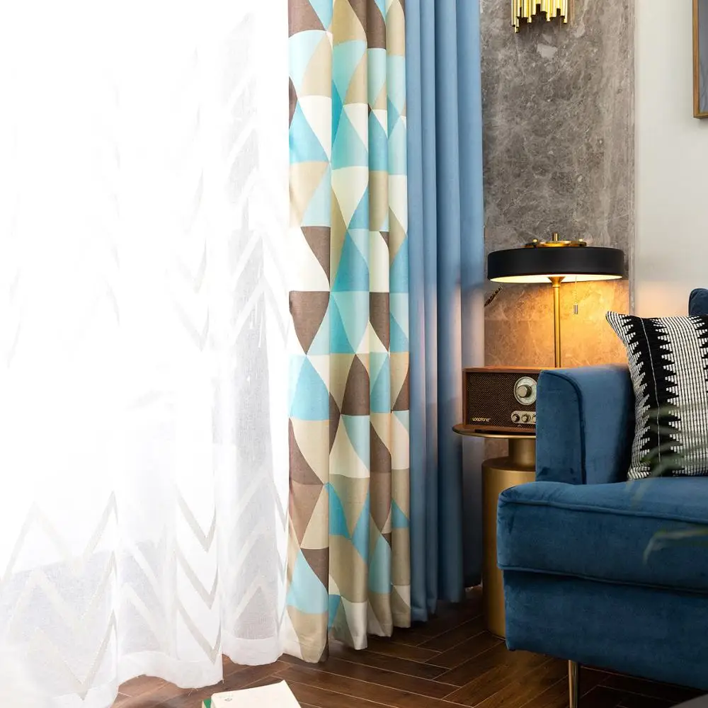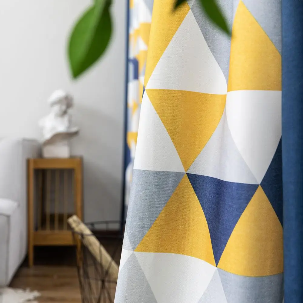 Nordic Geometric faux Linen Light Shading Blackout Curtain for Living Room