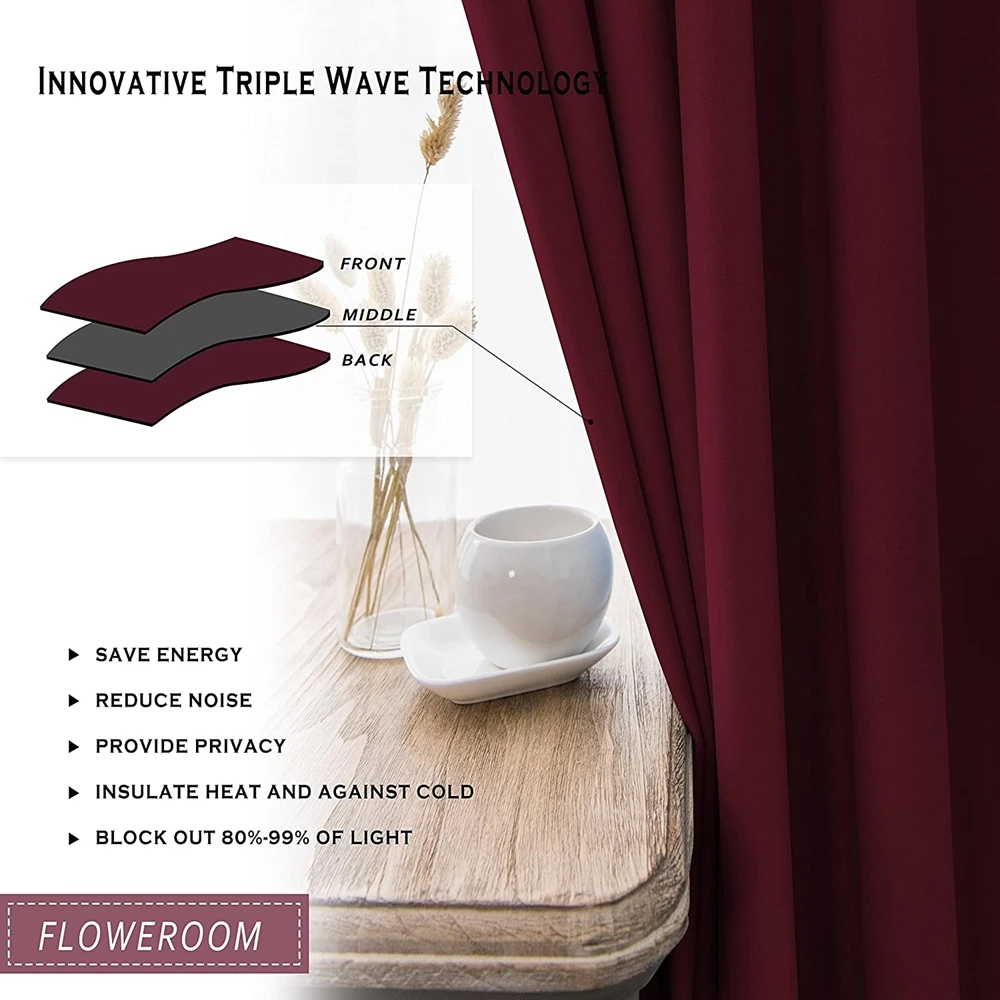 Burgundy Color Blackout Curtain Fabric Blackout Curtains for Bedroom Blackout Curtain for Living Room