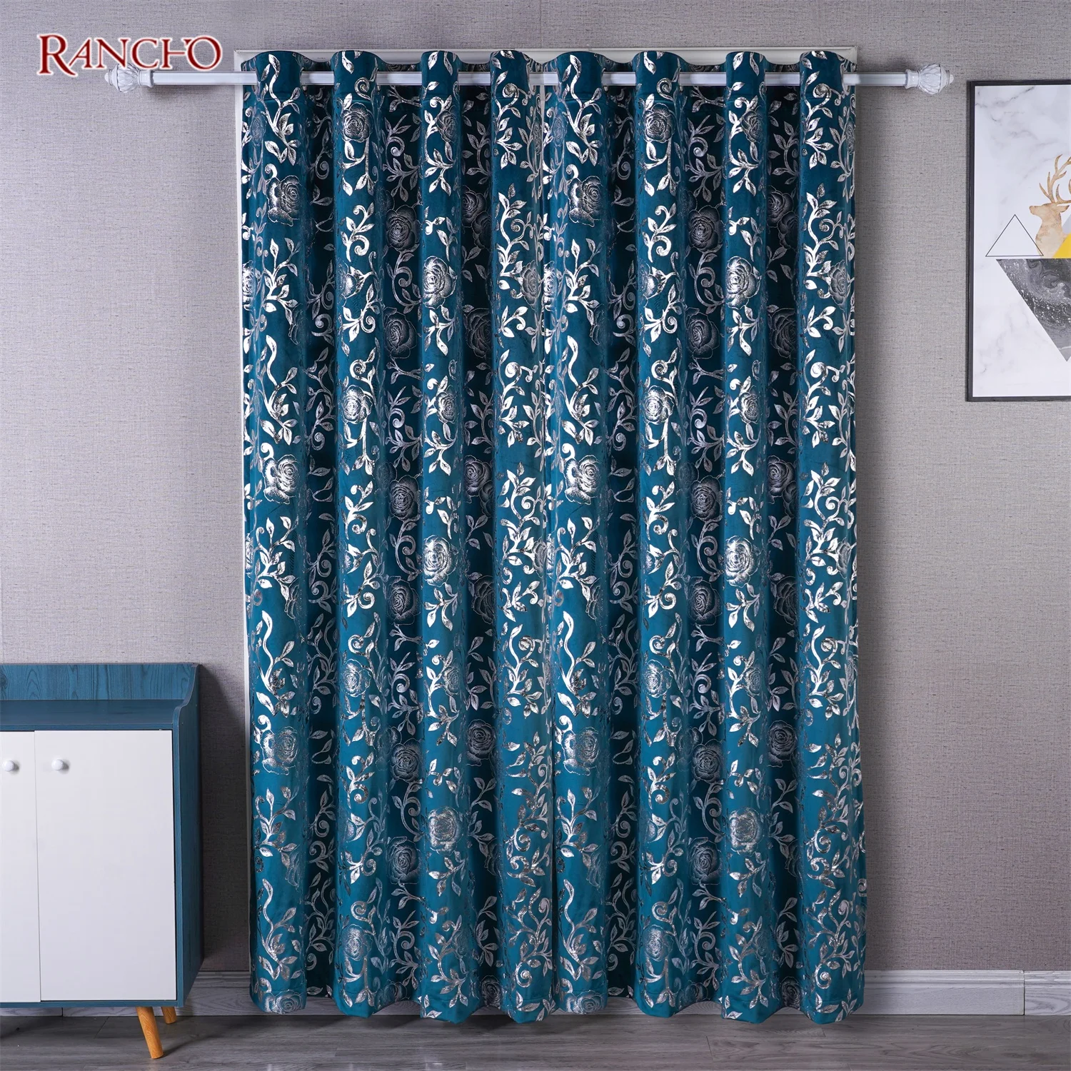 Luxury Velvet Curtains Foil RANCHO Sliver Gold Foil Curtains with Hot Stamping for Living Room