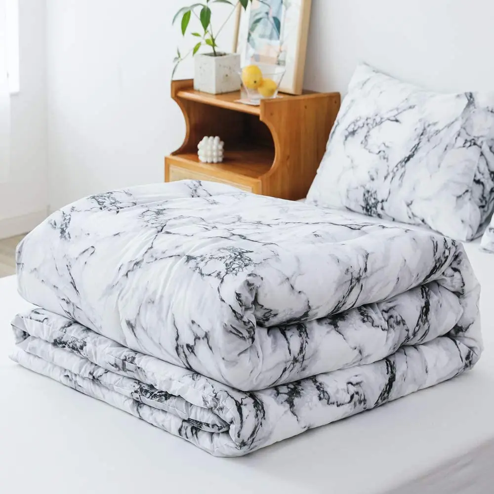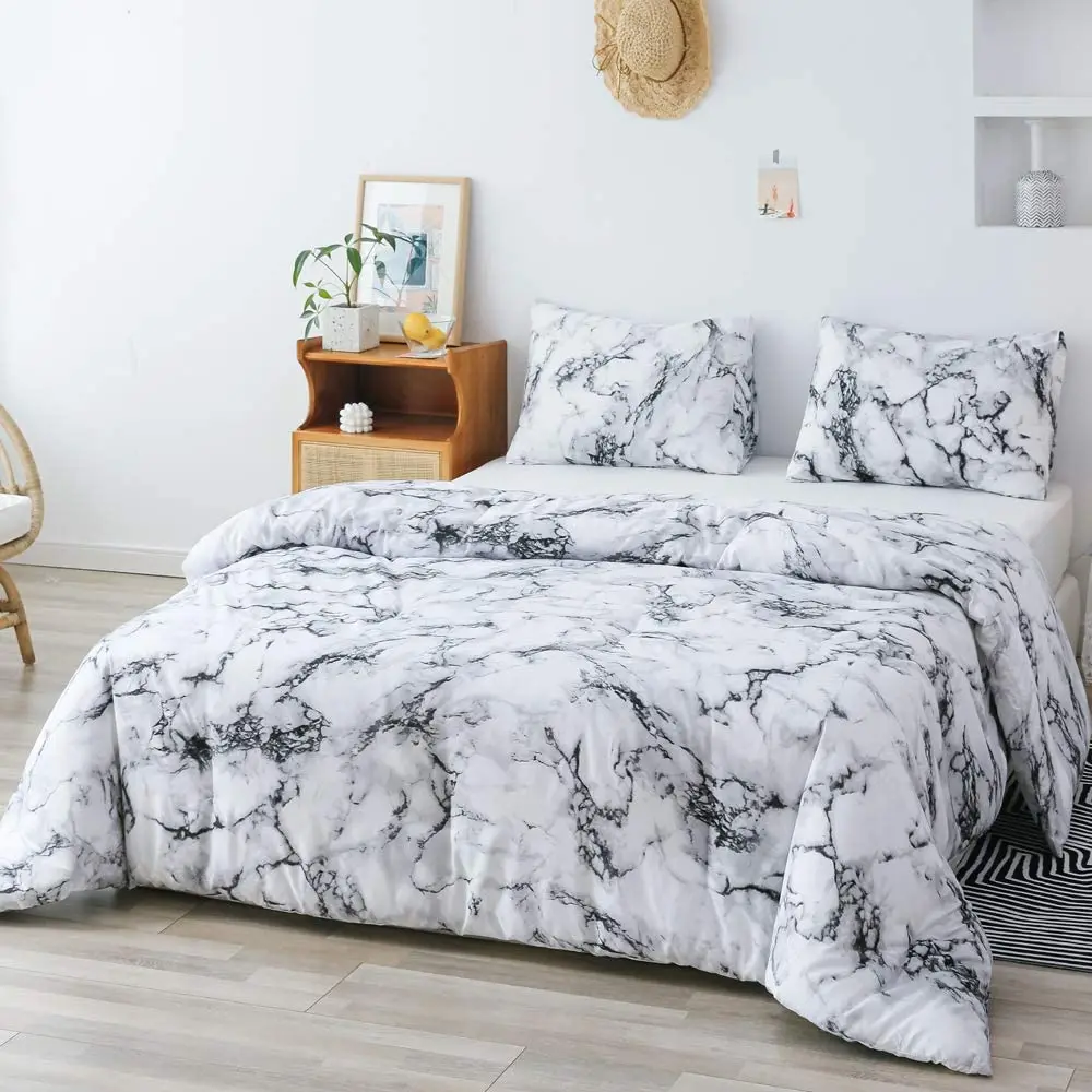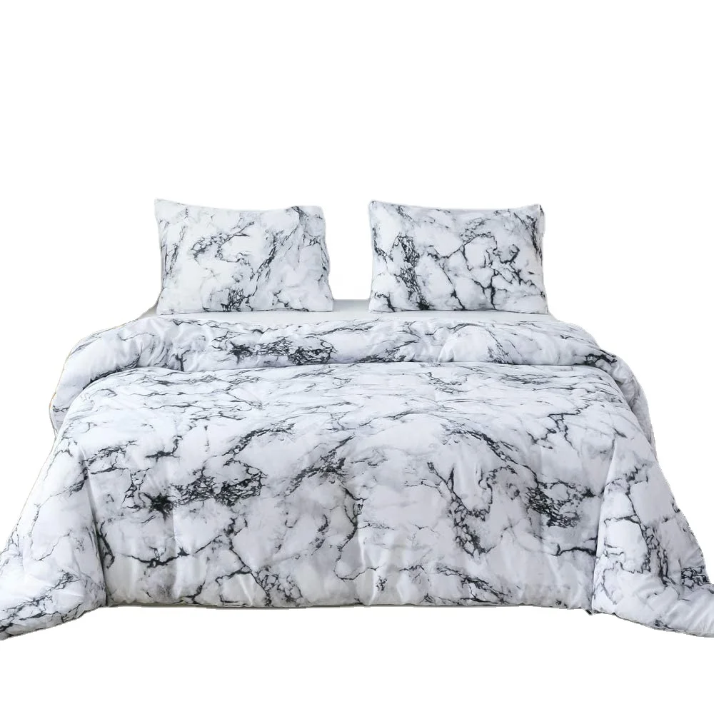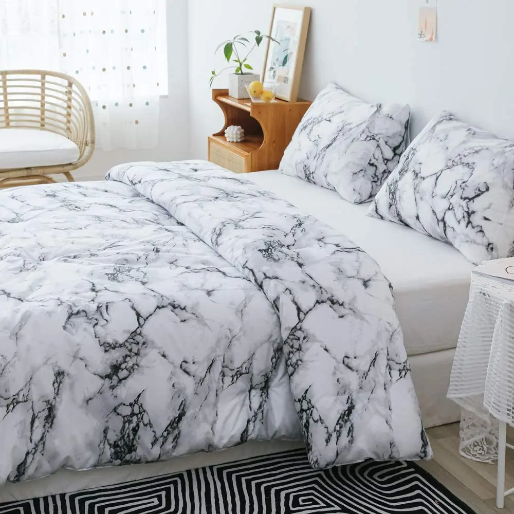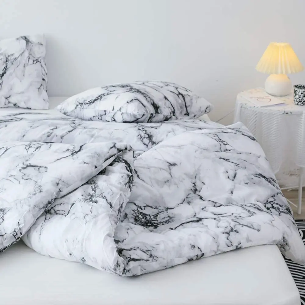 Hot Sale Unique White Black Marble Pattern Custom 3D Print Bedding Duvet Cover Set