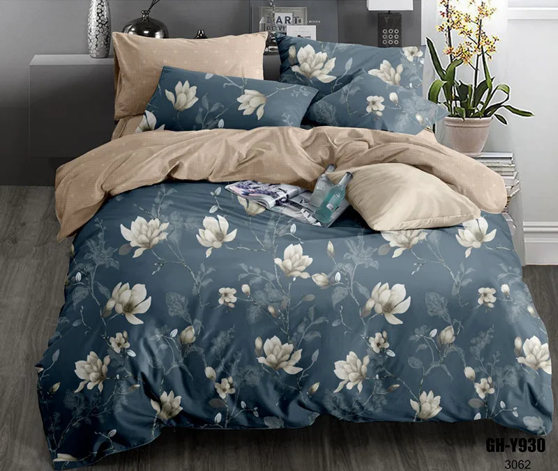 100% Polyester Bedding Set King Queen Double Single Size 4 Pieces Colorful Bed Sheet Set