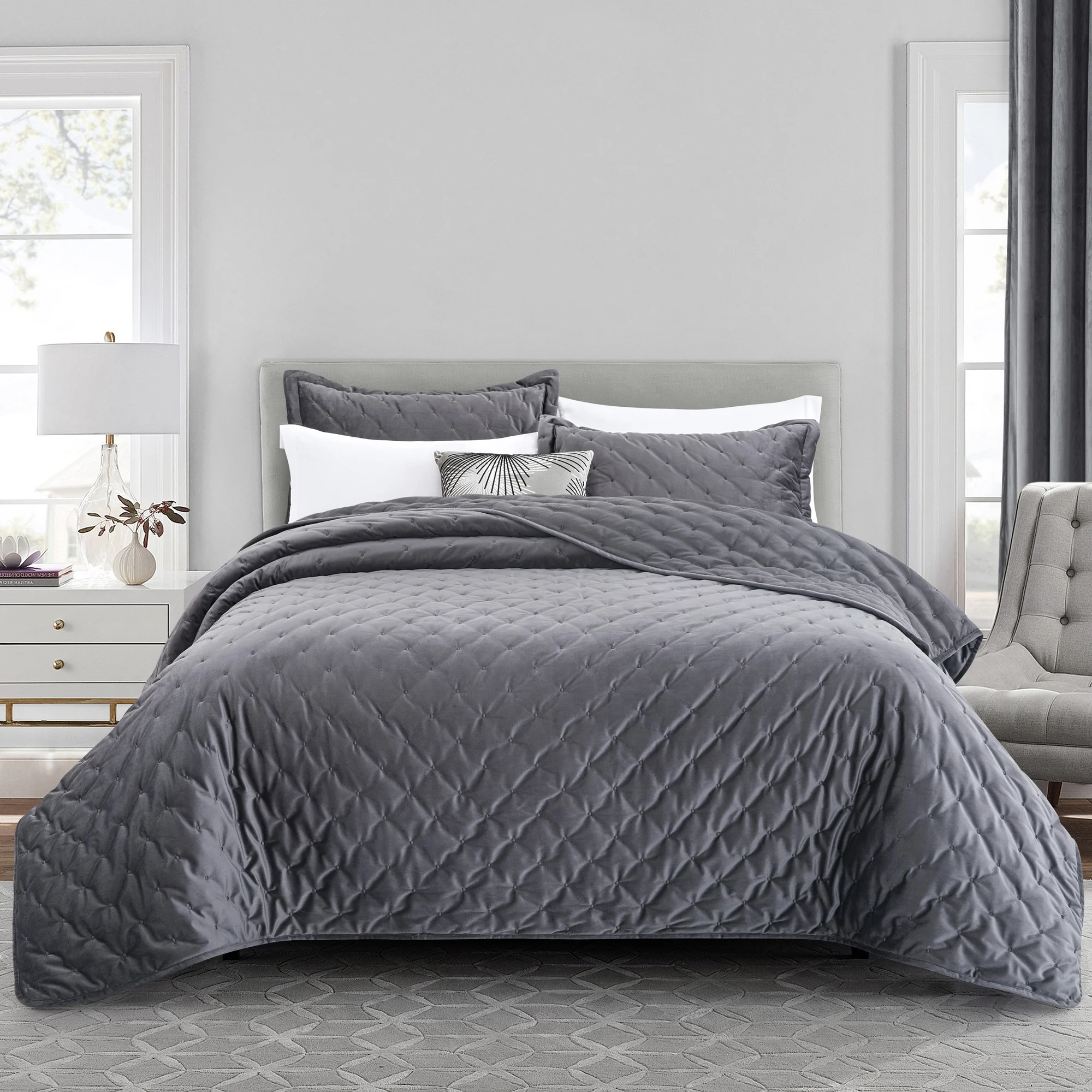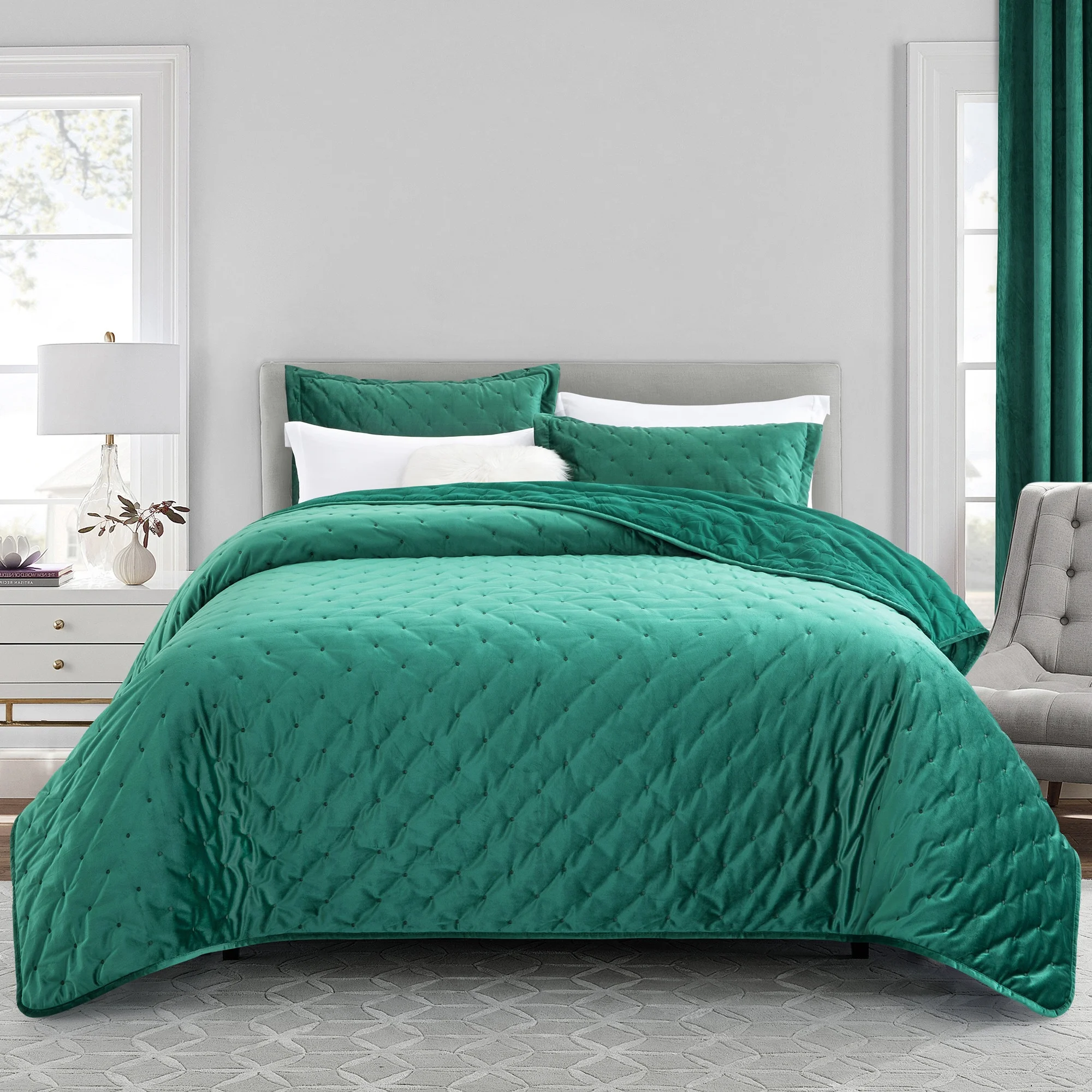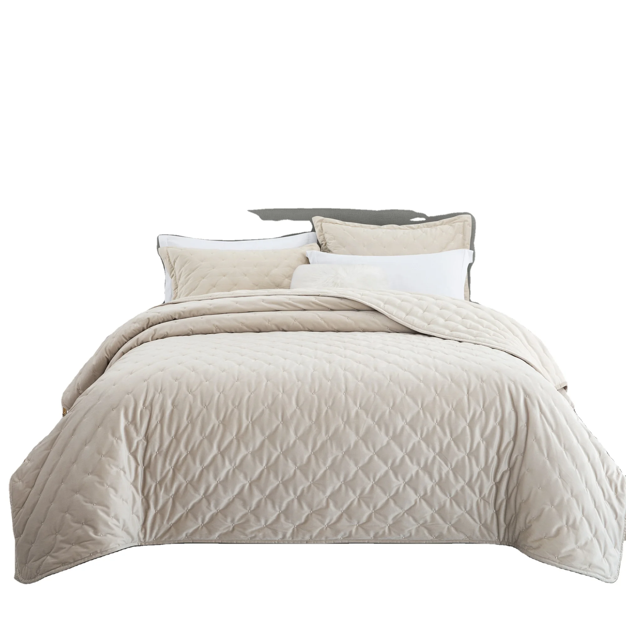 TOP Sale Velvet Bed Cover Bedding Set king Queen Size Super Soft Velvet Quilted Bedspread With Dots Embroidery Design