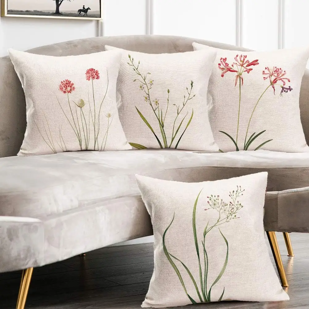 Throw Pillow Covers Green Leaf Floral Decorative Throw Pillow Case Cushion Cover Cotton Linen Pillowcase