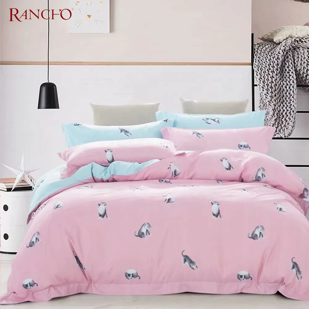Cartoon Cute Bedding Set Print Four-Piece Soft Comfortable Polyester Bed Sheet Duvet Cover for Hotel Home