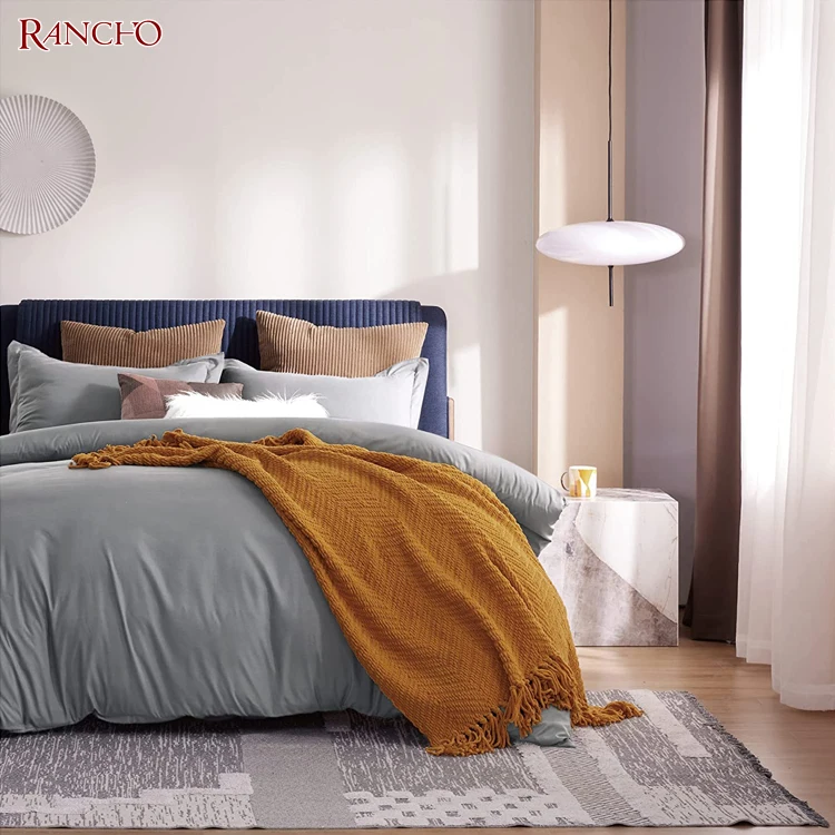 100% Bamboo Fiber Woven Modern Solid Color Bedding Set Super King Size Includes Flat Bed Sheet Fitted Duvet Cover