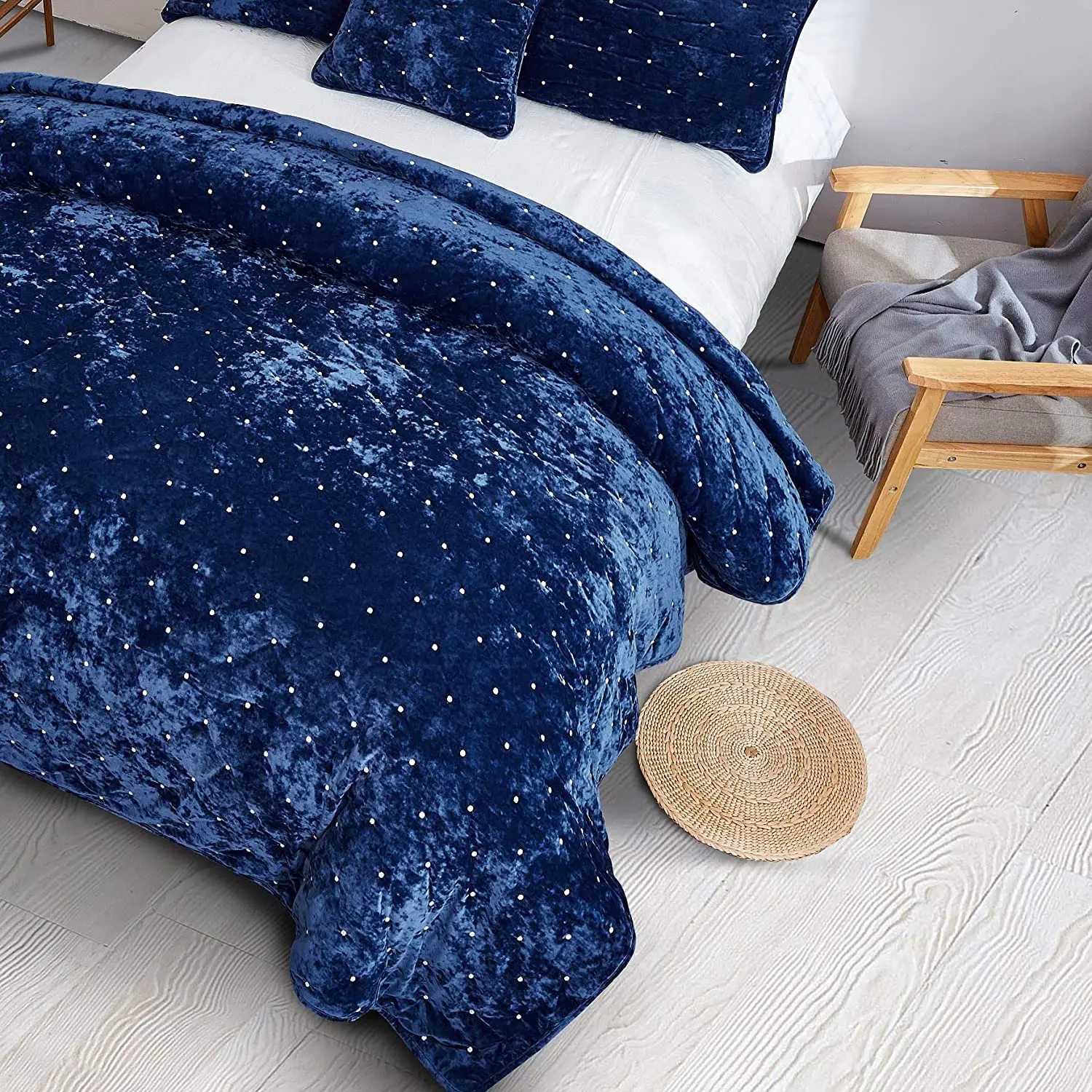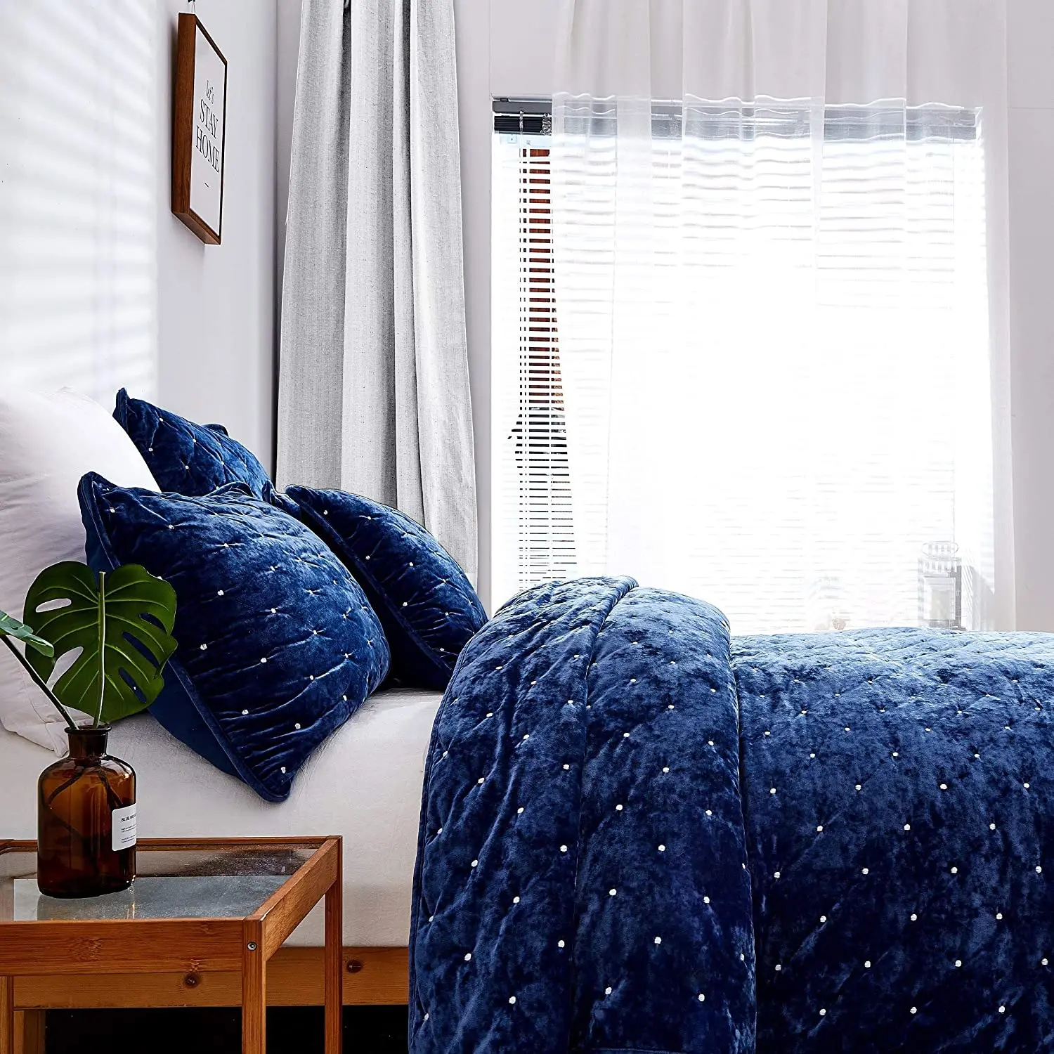 Soft Velvet Quilt Set With 2 Shams Bedspread Unique Pattern Stitching Design for All Season