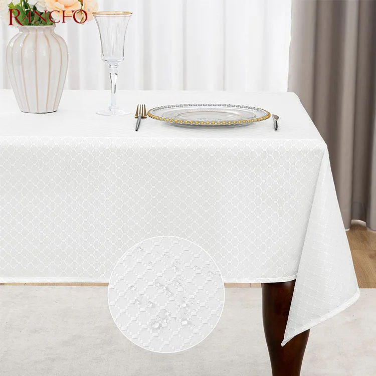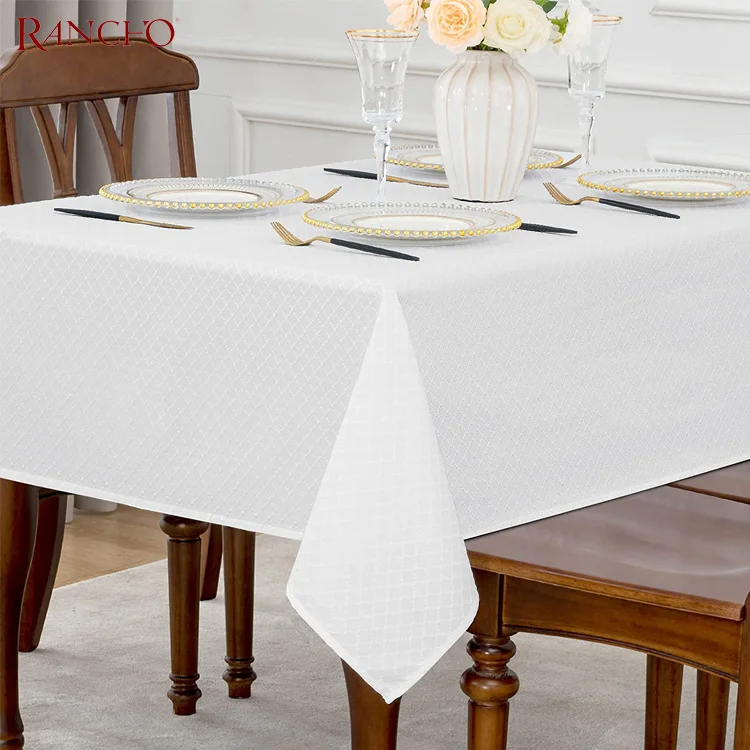 Jacquard Tablecloth Damask Wrinkle Resistant Oil Proof Heavy Weight Polyester Tablecloth for Kitchen Dining Table