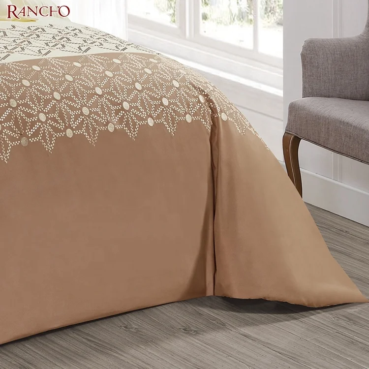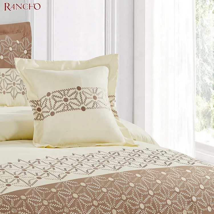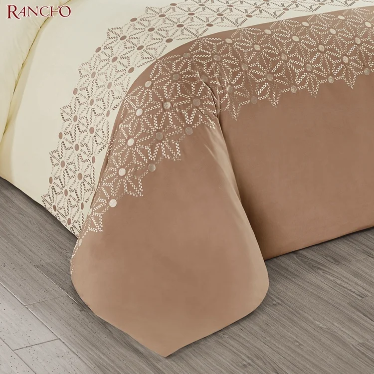 100%polyester Microfiber Queen king Size Bedding Set Luxury Embroidery Comforter Set 7 Pieces One Set