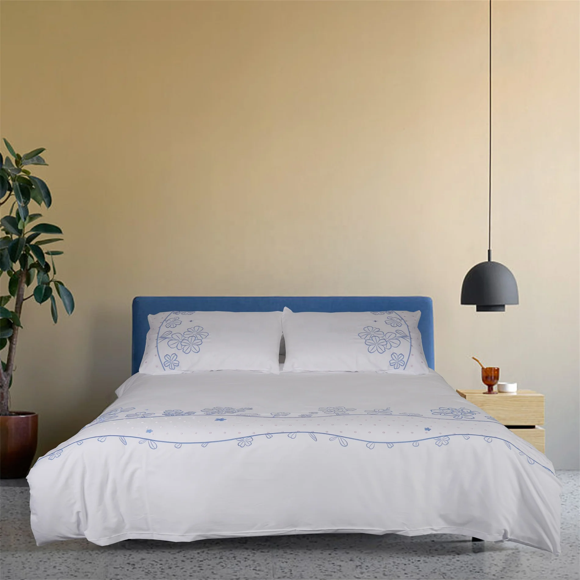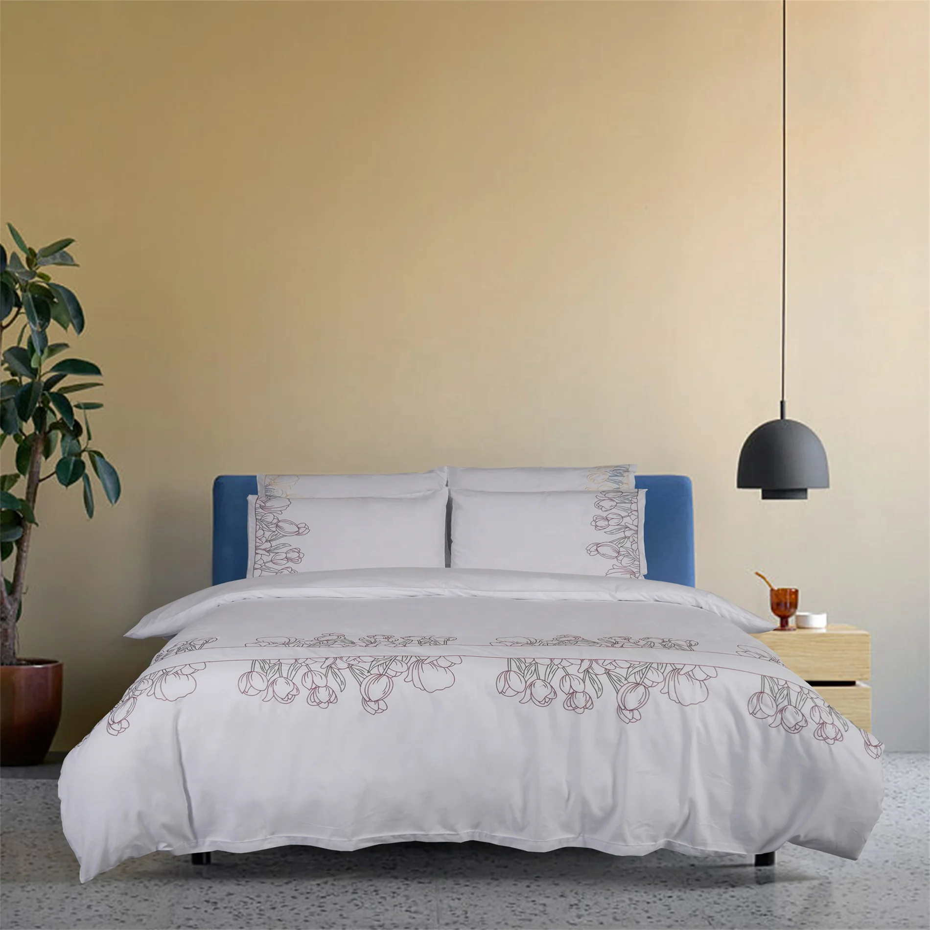 100% Bamboo Fiber Woven Modern Solid Color Bedding Set Super King Size Includes Flat Bed Sheet Fitted Duvet Cover