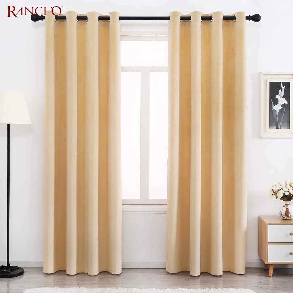 Grommet Room Blackout Velvet Curtain With Grommet Top for Bedroom Living Room