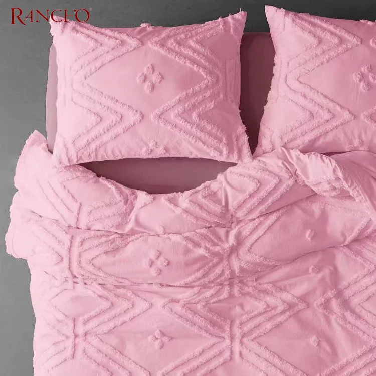 Tufted Carved Pile Custom Duvet Cover 3pcs With 2 Pillowcase Super Soft King Solid Color Bedding Set Wedding Quilt Cover Bedroom