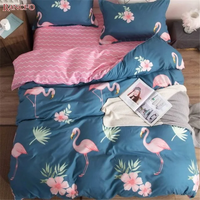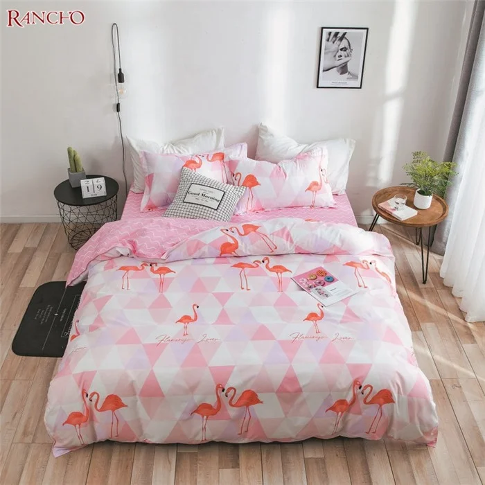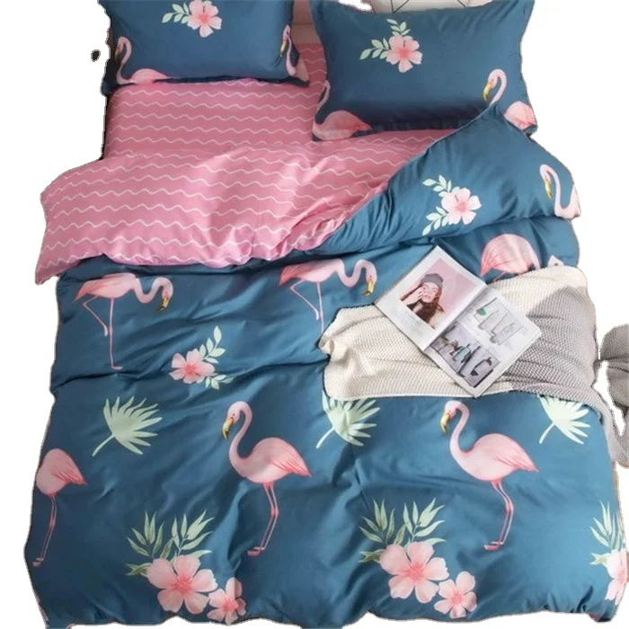 Popular Design Bedding Set Flamingo Pattern Printing Duvet Cover Set Printed Soft Microfiber Polyester