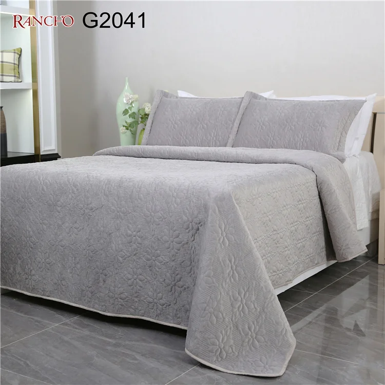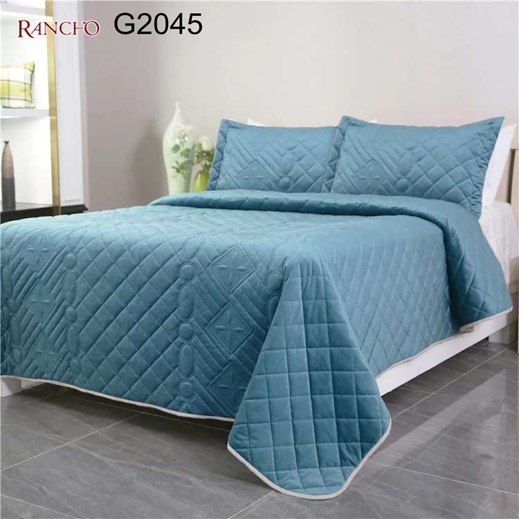 OEM ODM Factory Microfiber Quilt Embroidery Quilts Bedding Bedspreads Classical Solid Quilt Bedspread