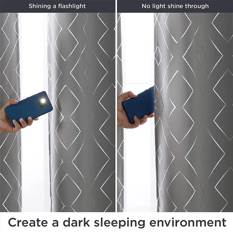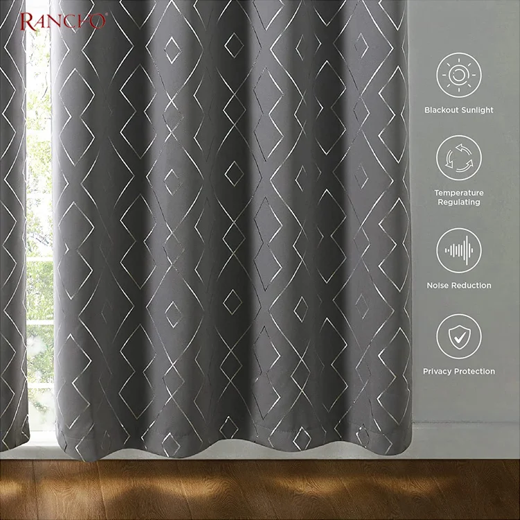 Wholesale Polyester Fabric Foil Print Grommet Window Blackout Curtains for the Living Room Kitchen Hotel