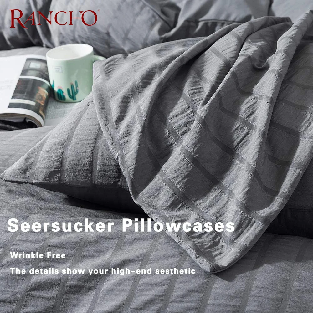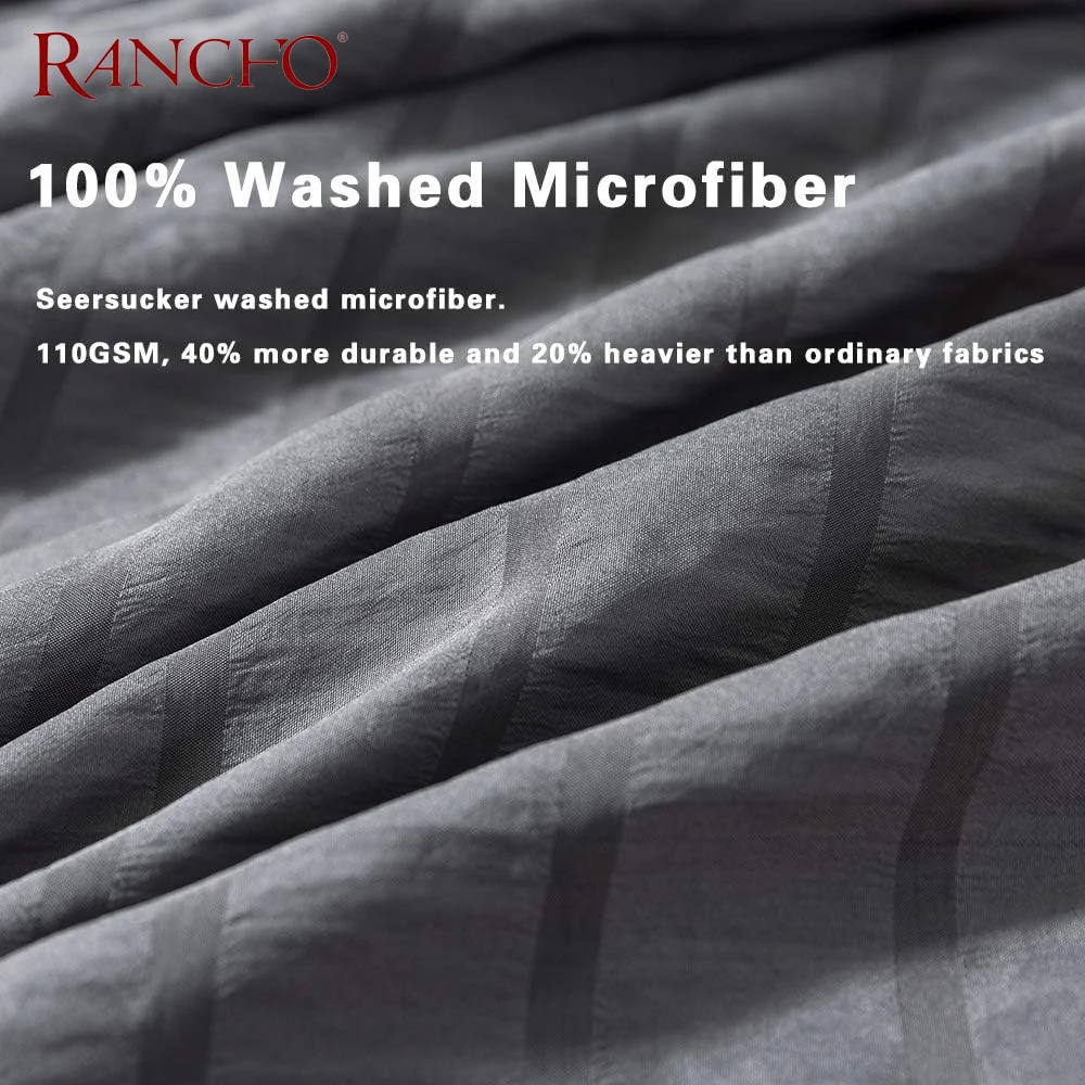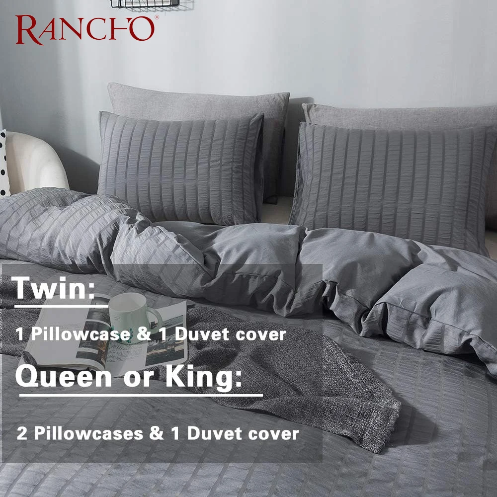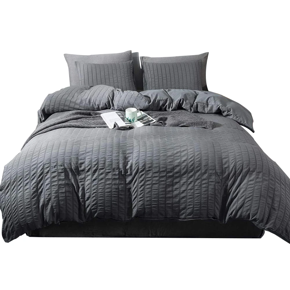 Seersucker Duvet Cover Set Queen Size 3 Pieces Dark Gray Ultra Soft Washed Microfiber Textured Duvet Cover With Zipper Closure