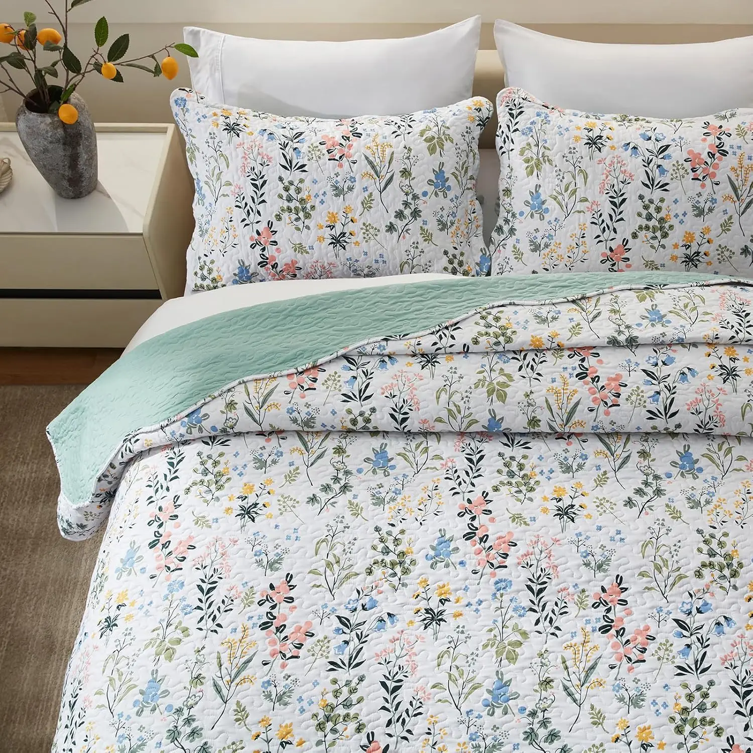 OKOTEX Certificate Embroidery Quilts Bedding Bedspreads Printing Microfiber king Queen Size Quilted Bedspread Set
