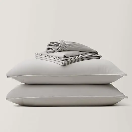 100% Bamboo Fiber Woven Modern Solid Color Bedding Set Super King Size Includes Flat Bed Sheet Fitted Duvet Cover