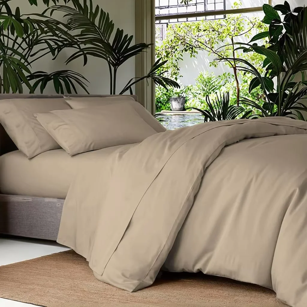 100% Bamboo Fiber Woven Modern Solid Color Bedding Set Super King Size Includes Flat Bed Sheet Fitted Duvet Cover