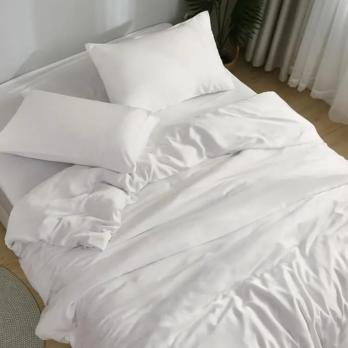 100% Bamboo Fiber Woven Modern Solid Color Bedding Set Super King Size Includes Flat Bed Sheet Fitted Duvet Cover