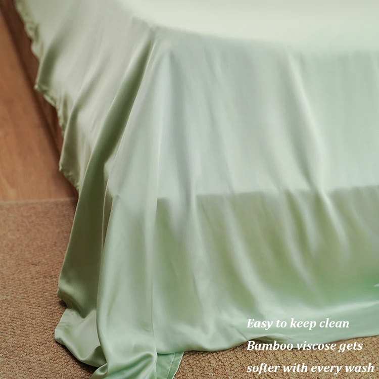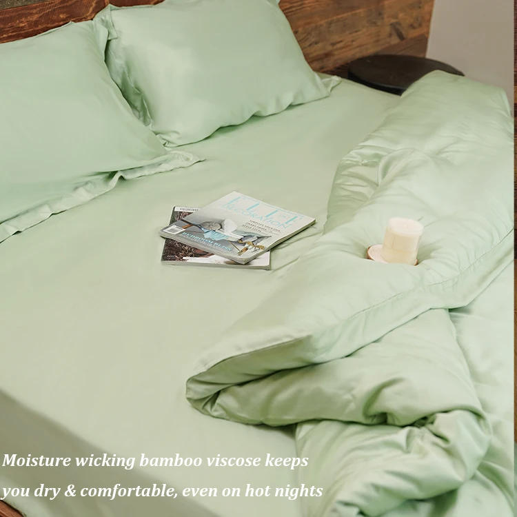 100% Bamboo Fiber Woven Modern Solid Color Bedding Set Super King Size Includes Flat Bed Sheet Fitted Duvet Cover