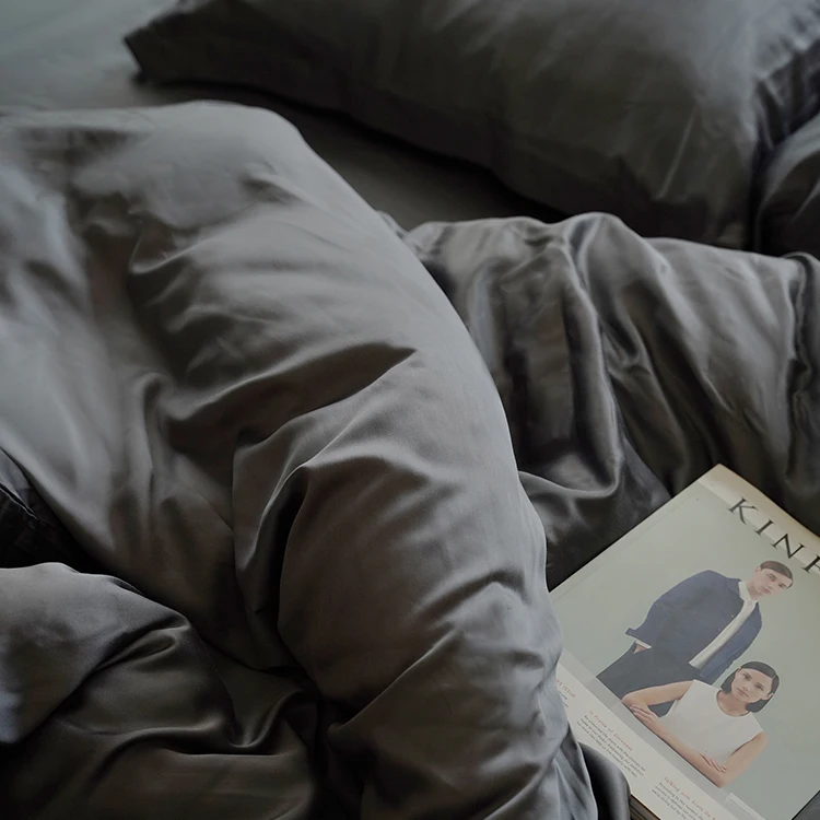 100% Bamboo Fiber Woven Modern Solid Color Bedding Set Super King Size Includes Flat Bed Sheet Fitted Duvet Cover