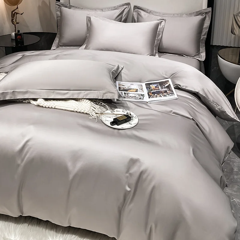 100% Bamboo Fiber Woven Modern Solid Color Bedding Set Super King Size Includes Flat Bed Sheet Fitted Duvet Cover