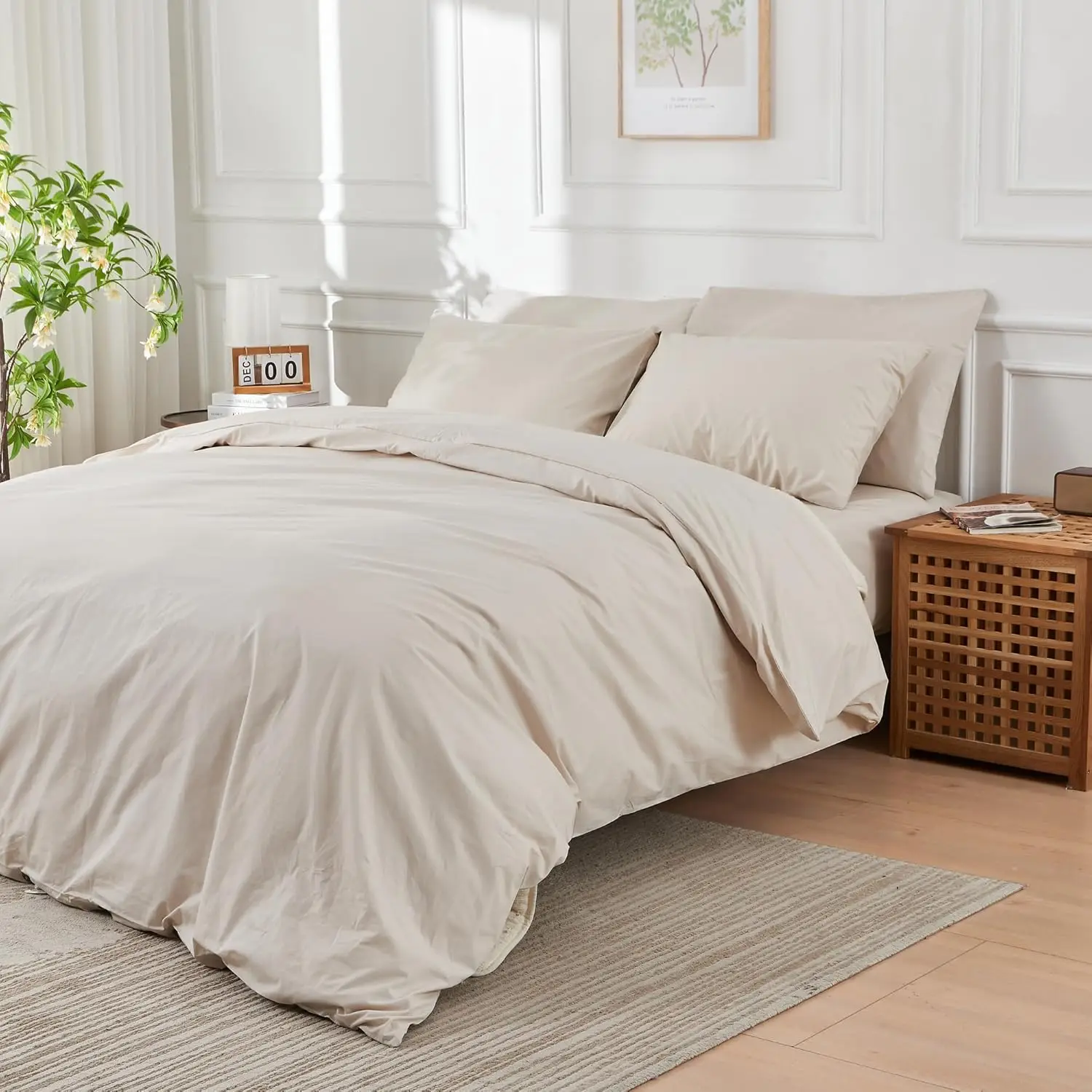 100% Bamboo Fiber Woven Modern Solid Color Bedding Set Super King Size Includes Flat Bed Sheet Fitted Duvet Cover