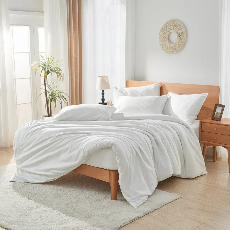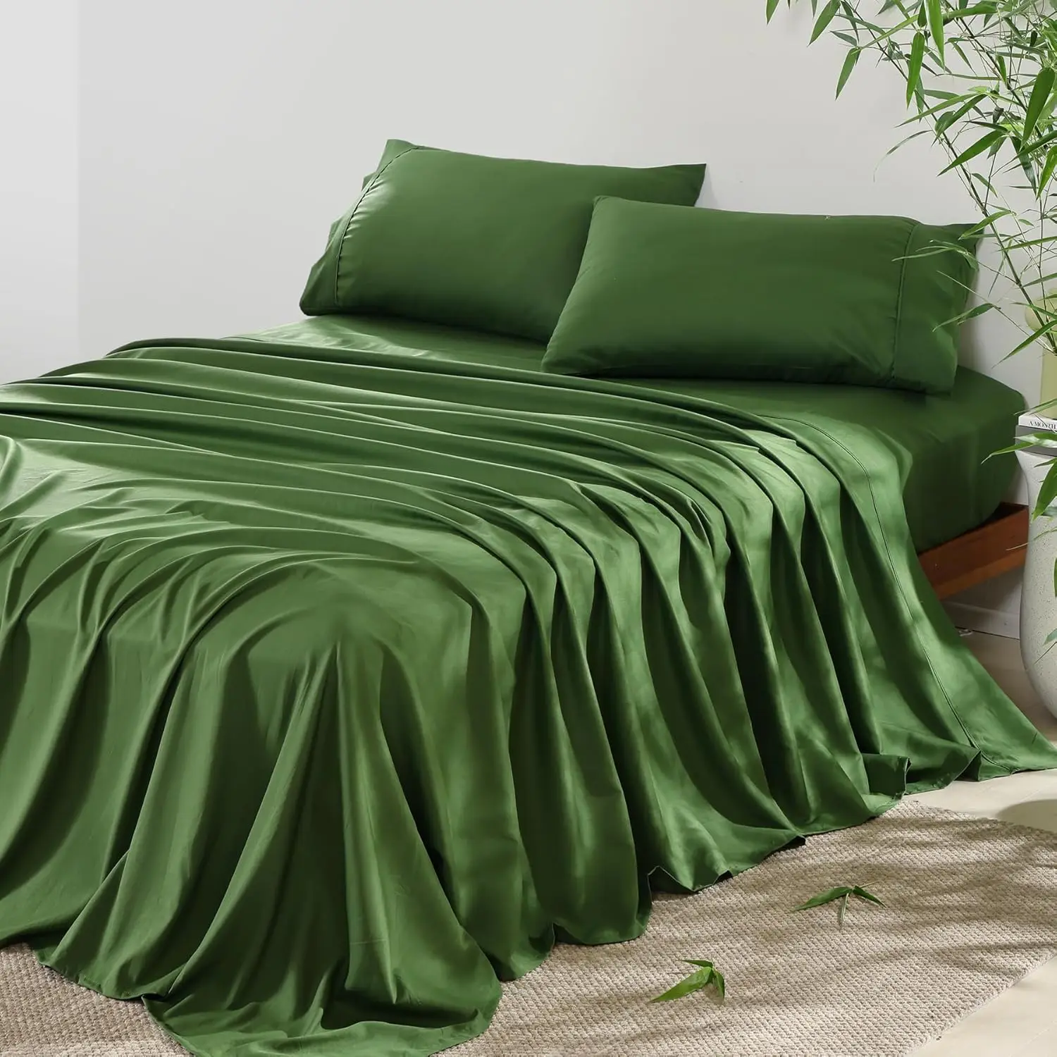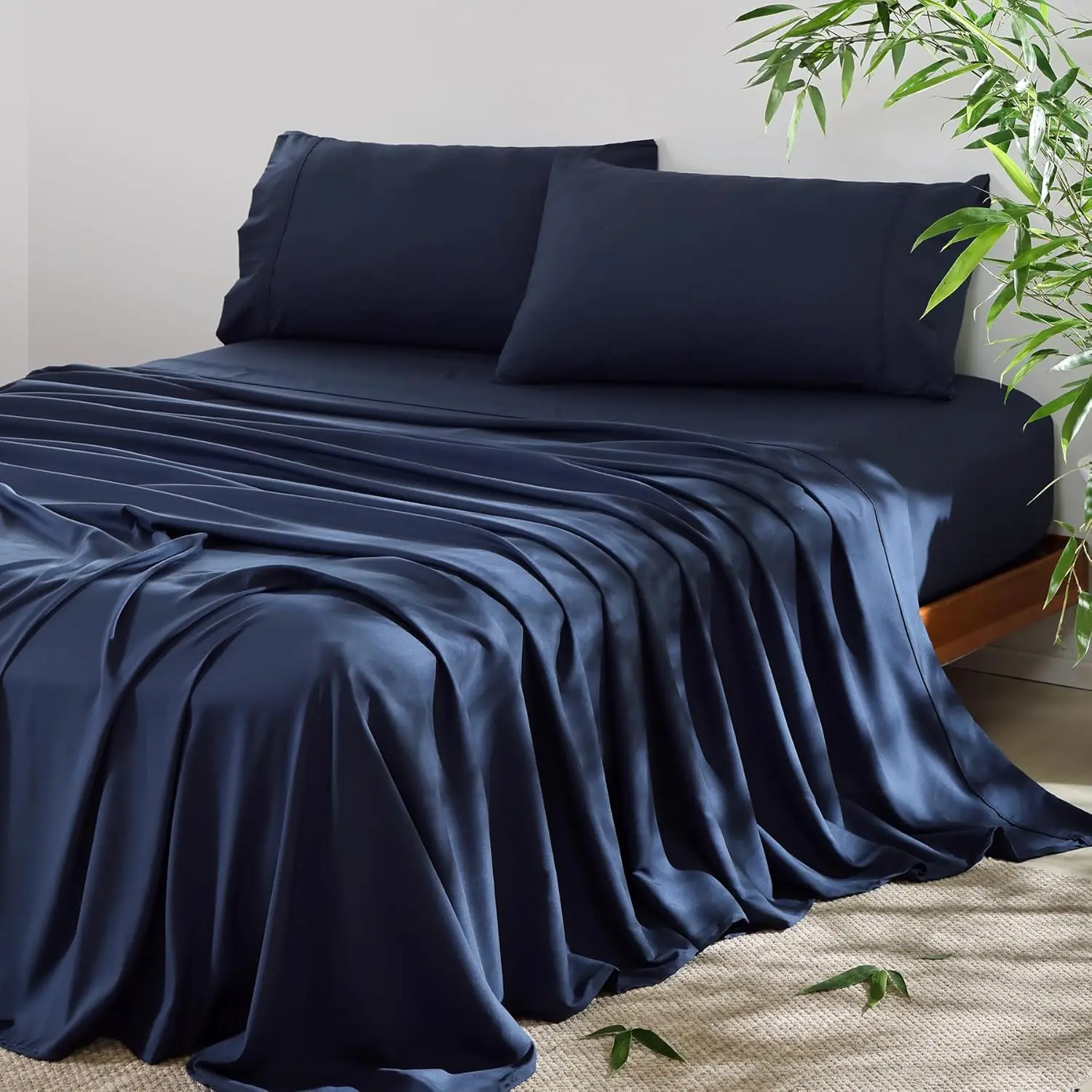 100% Bamboo Fiber Woven Modern Solid Color Bedding Set Super King Size Includes Flat Bed Sheet Fitted Duvet Cover
