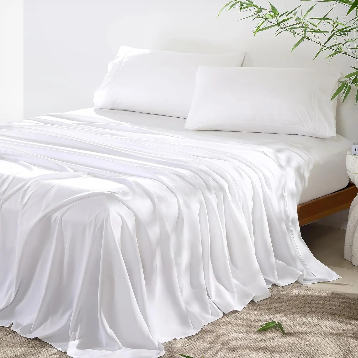 Eco Friendly Luxury Bamboo Fiber Bedding Set 4 Pieces Breathable Bed Linen for Hotel Use