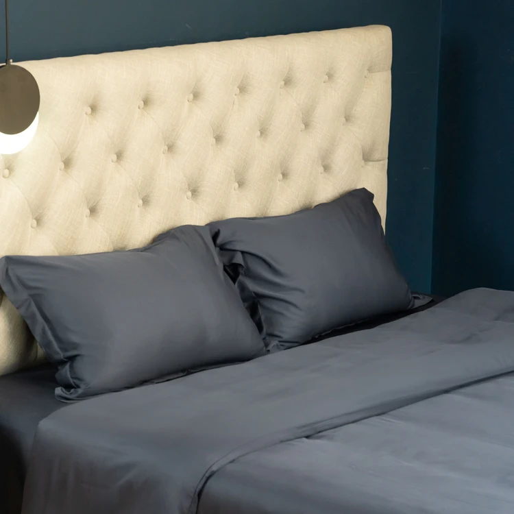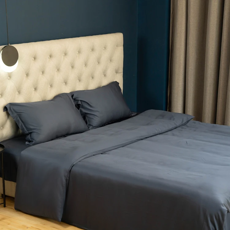 100% Bamboo Fiber Woven Modern Solid Color Bedding Set Super King Size Includes Flat Bed Sheet Fitted Duvet Cover