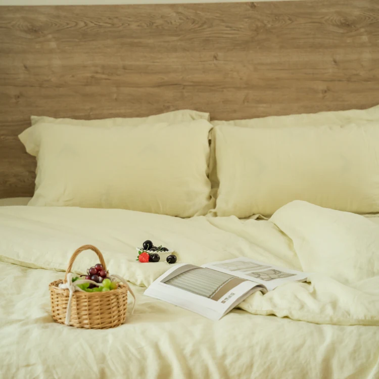 Wholesale Luxury Flax Factory Direct Sale Solid Color Washed 100% Natural Pure Flax Fiber Linen Bedding Sheet Set