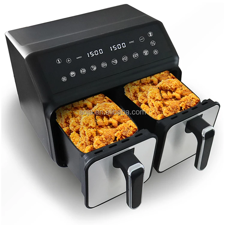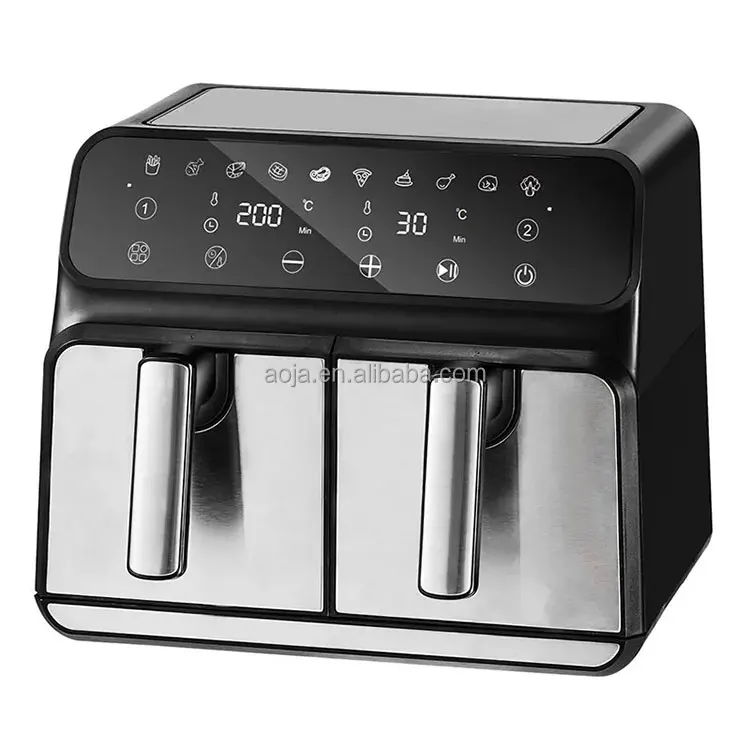 9.5L Large Dual Zone Air Fryer 4L*2 Baskets, Commercial & Household OEM/ODM Service, Free Shipping Color Screen+stainless Steel