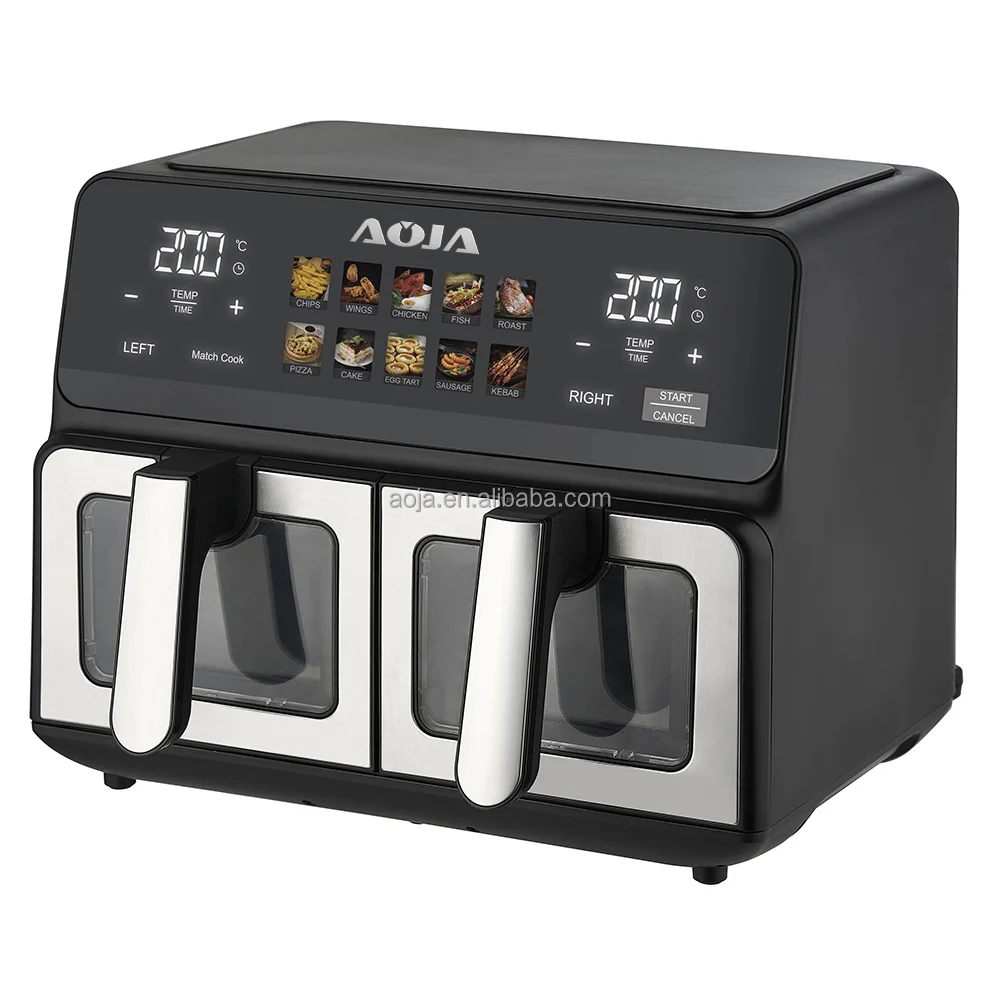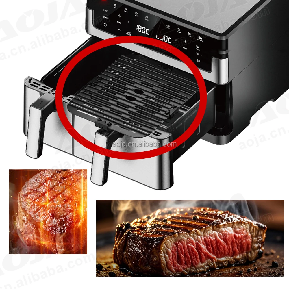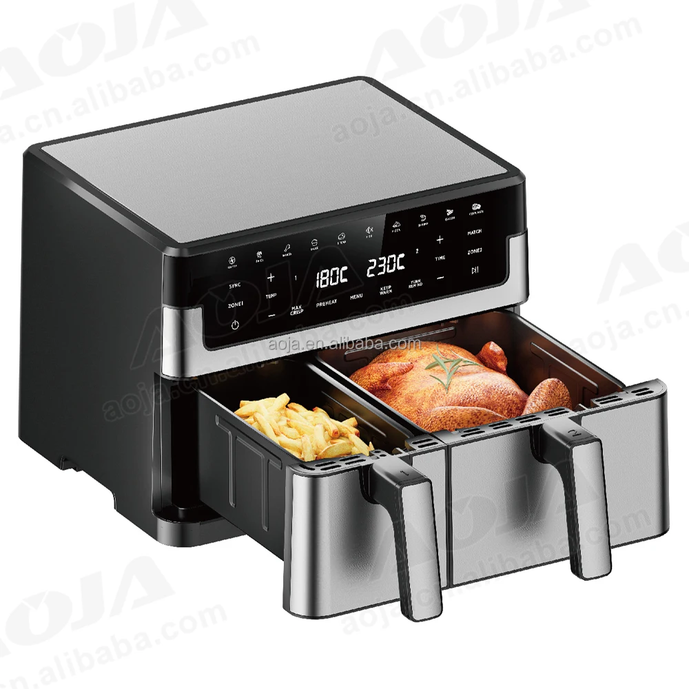 AOJA OEM Double Basket Square Modern Stainless Steel Digital Air Fryer 8-10L Capacity Stainless Steel air Fryer air Fry