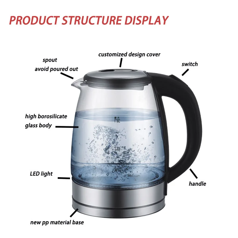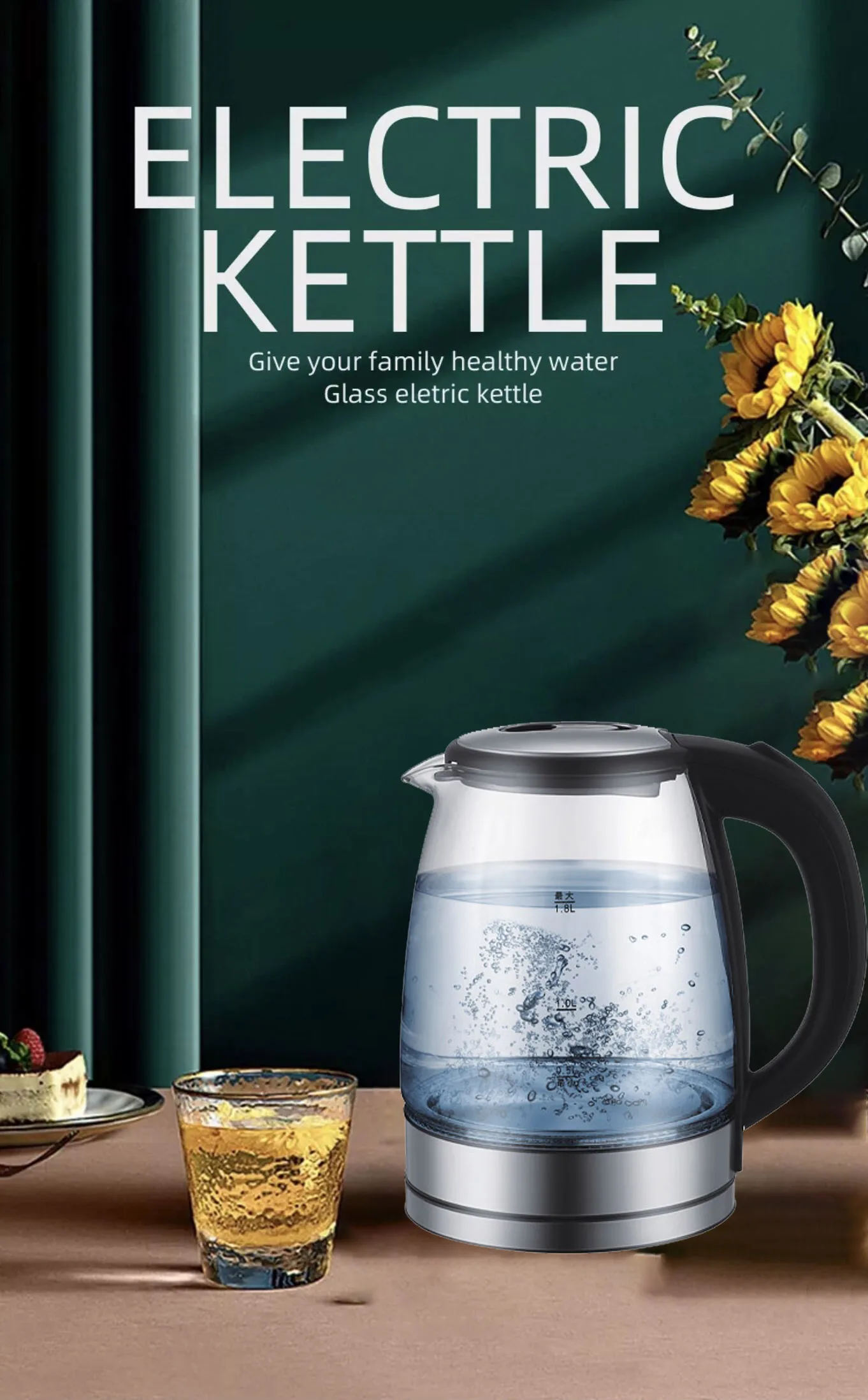 Best Selling 1.8L Glass Electric Kettle Heater High Quality Portable Household Item