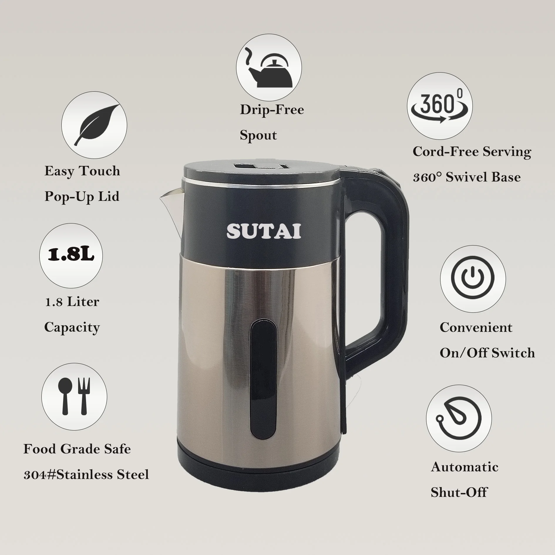 2026 Well Made Electric Kettle 1500W New 1.8 Liter Kettle Electric Home Appliances Electric Jug Kettle
