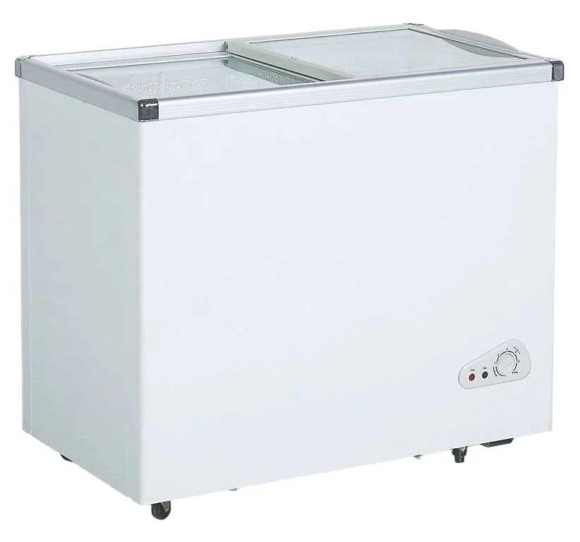 2026 New Style 288L Supermarket Sliding Top Open Glass Door Commercial & Household Use Chest Freezer for Storage