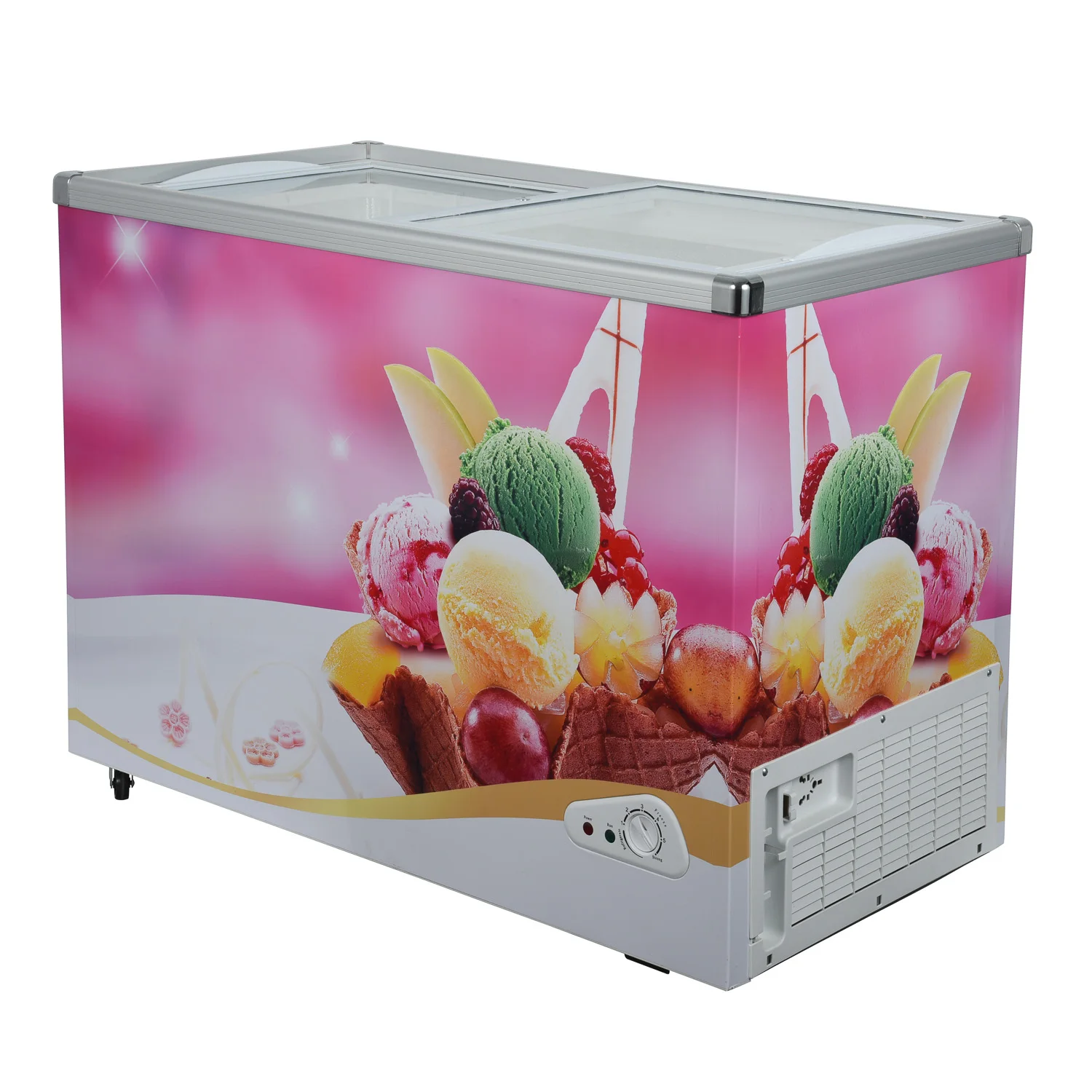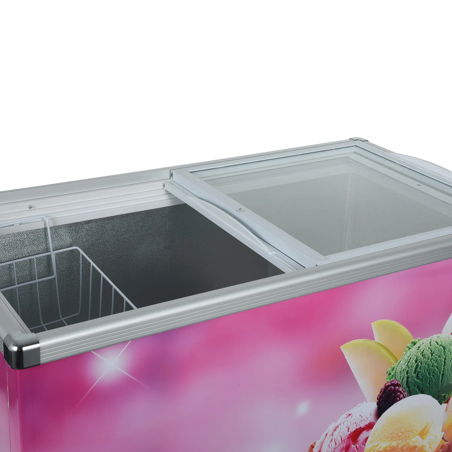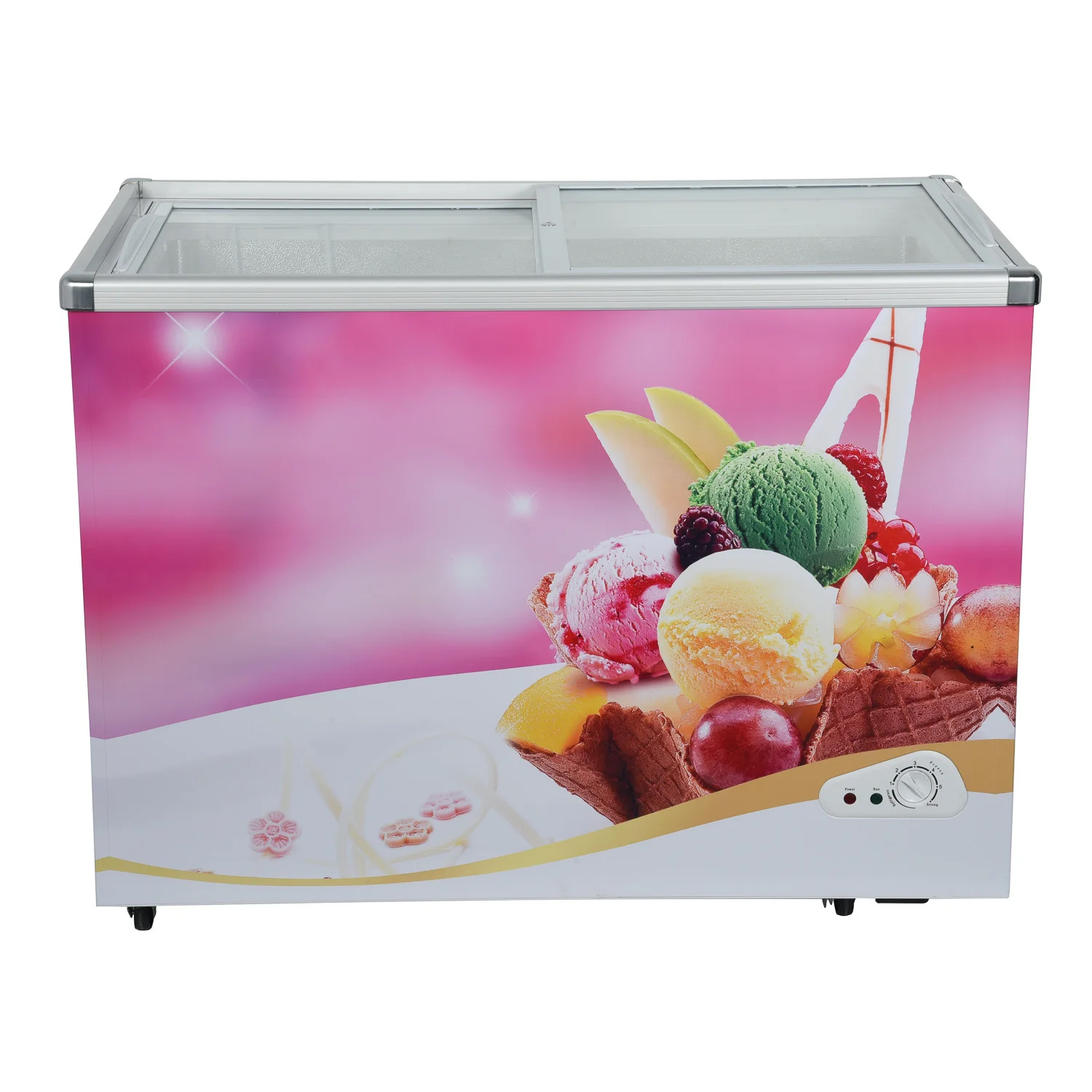 2026 New Style 238L Commercial Sliding Top Open Glass Door Display Chest Freezer