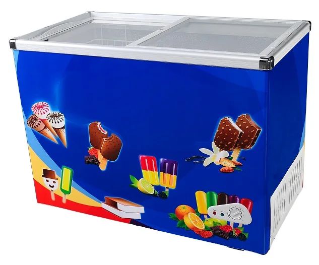 2026 New Style 288L Supermarket Sliding Top Open Glass Door Display Chest Freezer for Storage