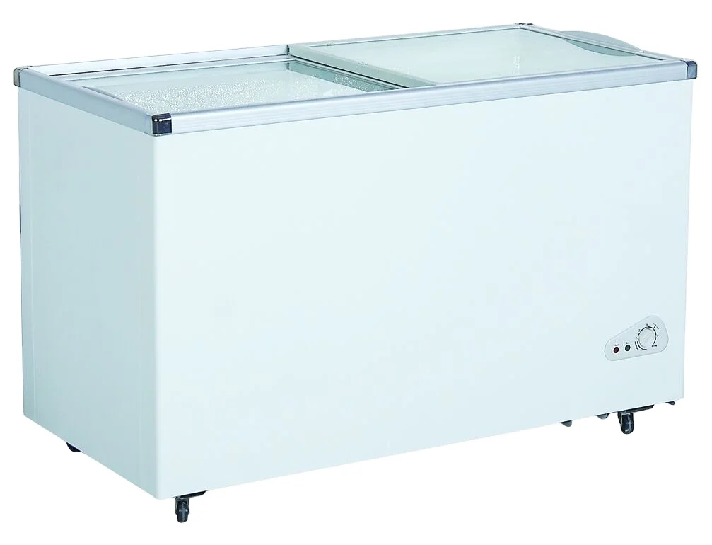 2026 New Style 288L Supermarket Sliding Top Open Glass Door Display Chest Freezer for Storage for Household & Commercial Use