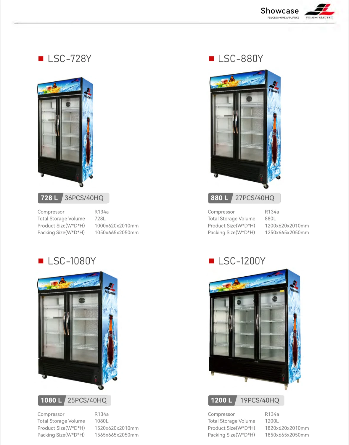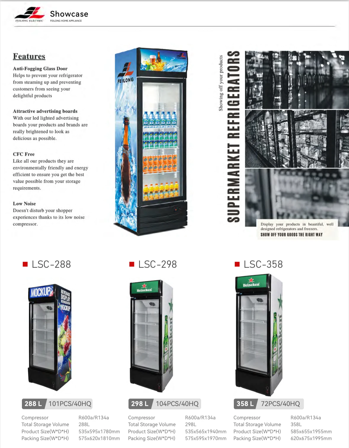 Wholesale Folding Glass Door New Design LSC-298 Free Spare Parts 298L Direct Cooling Showcase with Fan and Shelf