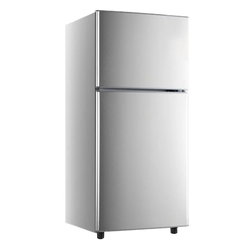 Factory Direct Sale Electric Portable 102L Compact Stainless Steel Fridge Double Doors Top Freezer Commercial Household French