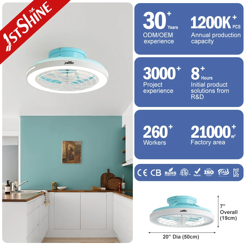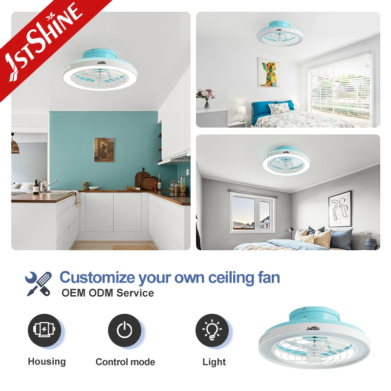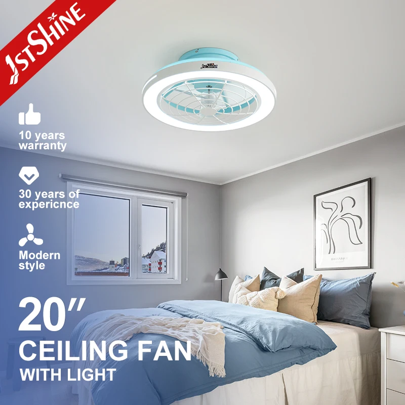 1stshine LED Ceiling Fan 20 Inches Flush Mounted Blue Color OEM 220V Round Smart Ceiling Fan